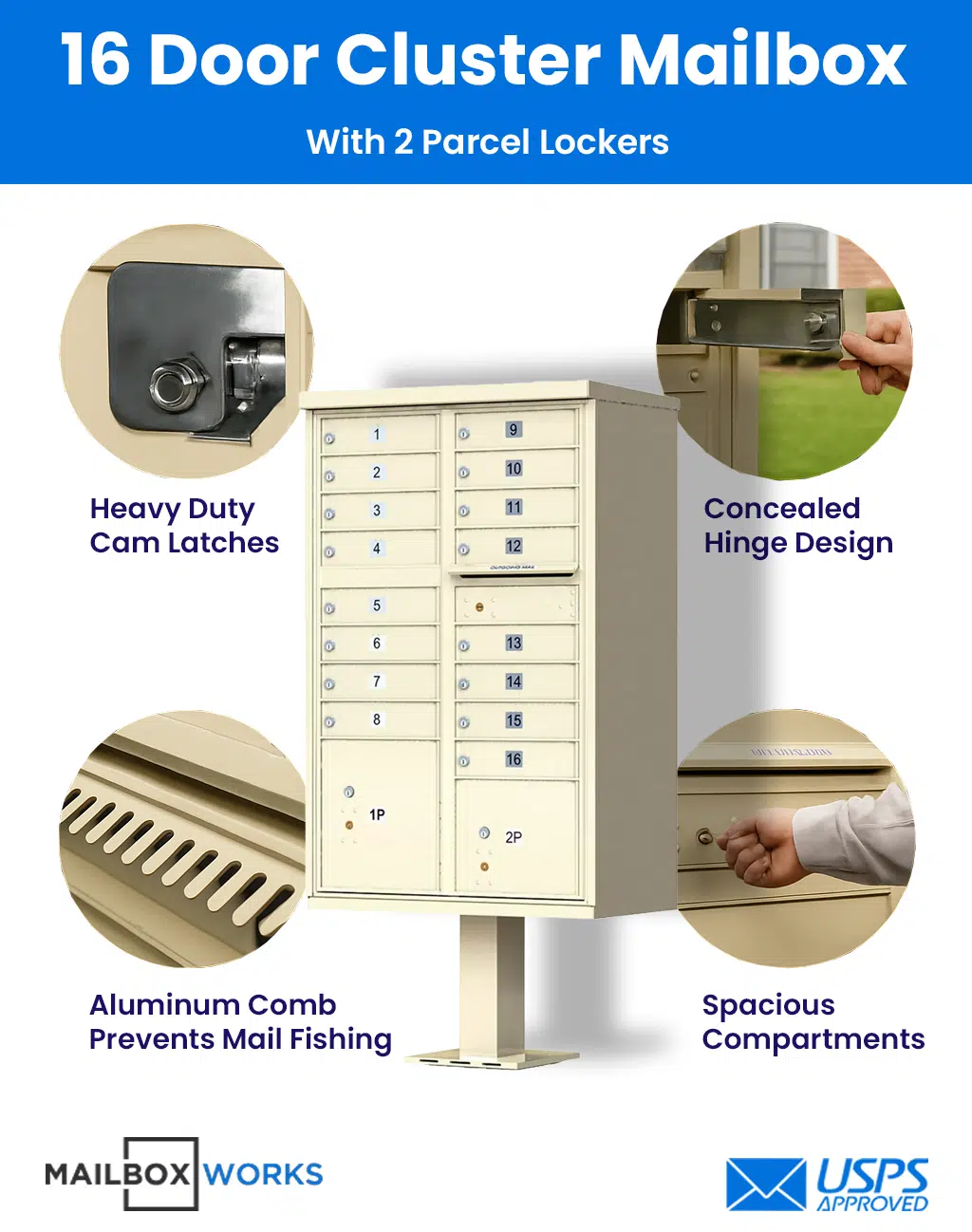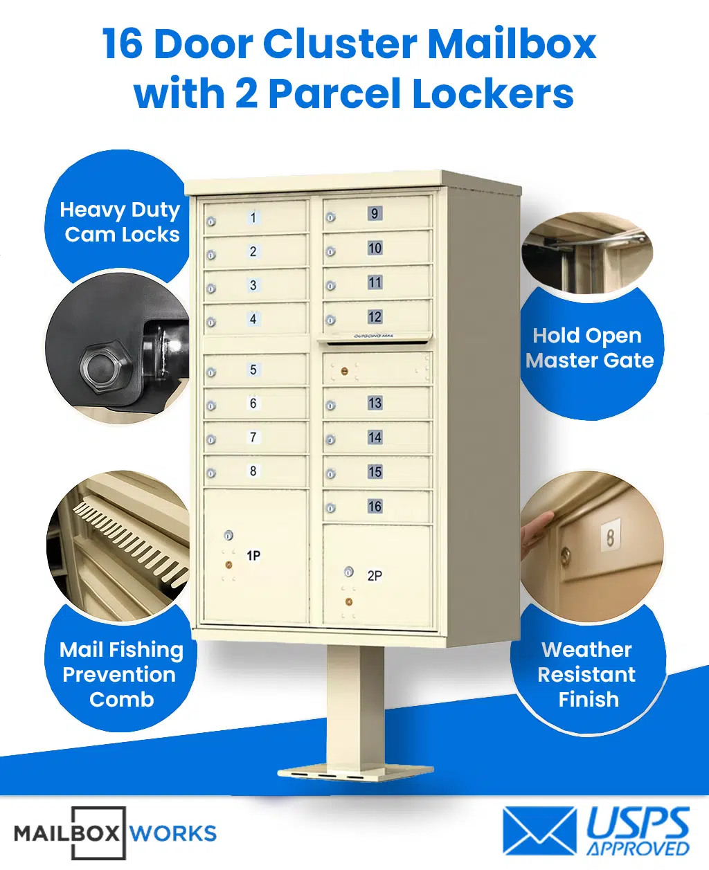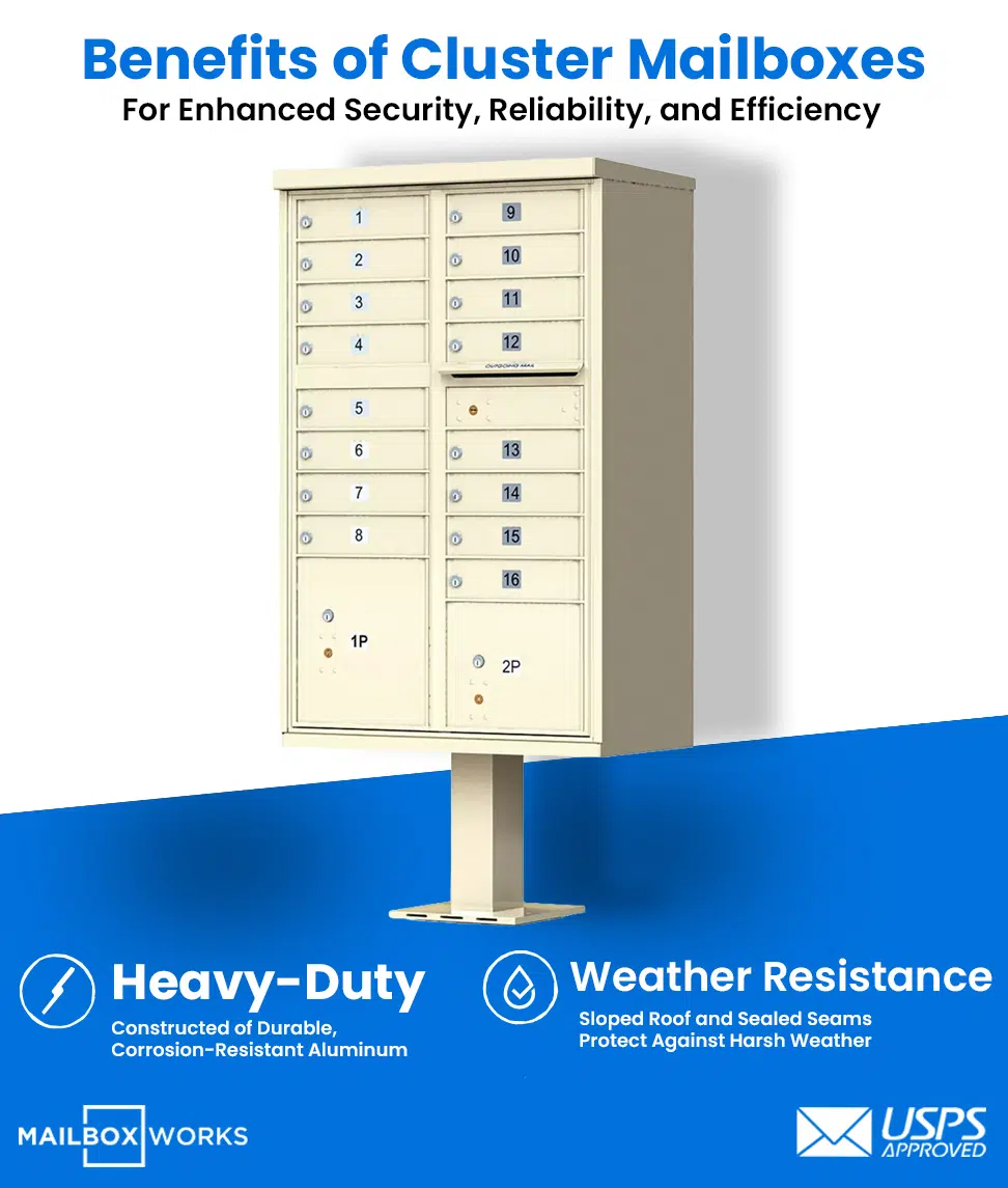 For ultimate security and convenience, the 16-Door Cluster Mailbox by Mailboxworks is a USPS-approved solution for residential and business properties, crafted for reliable mail and identity protection.