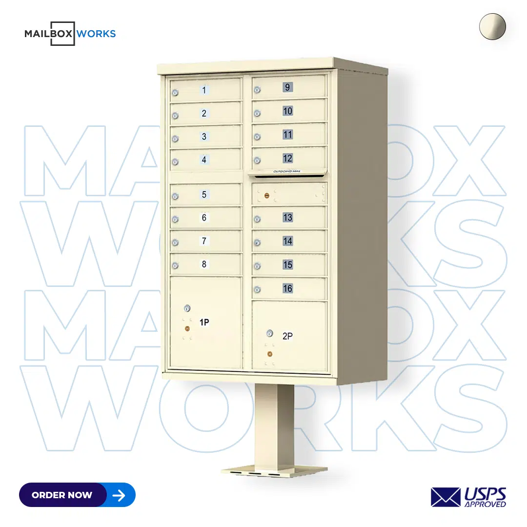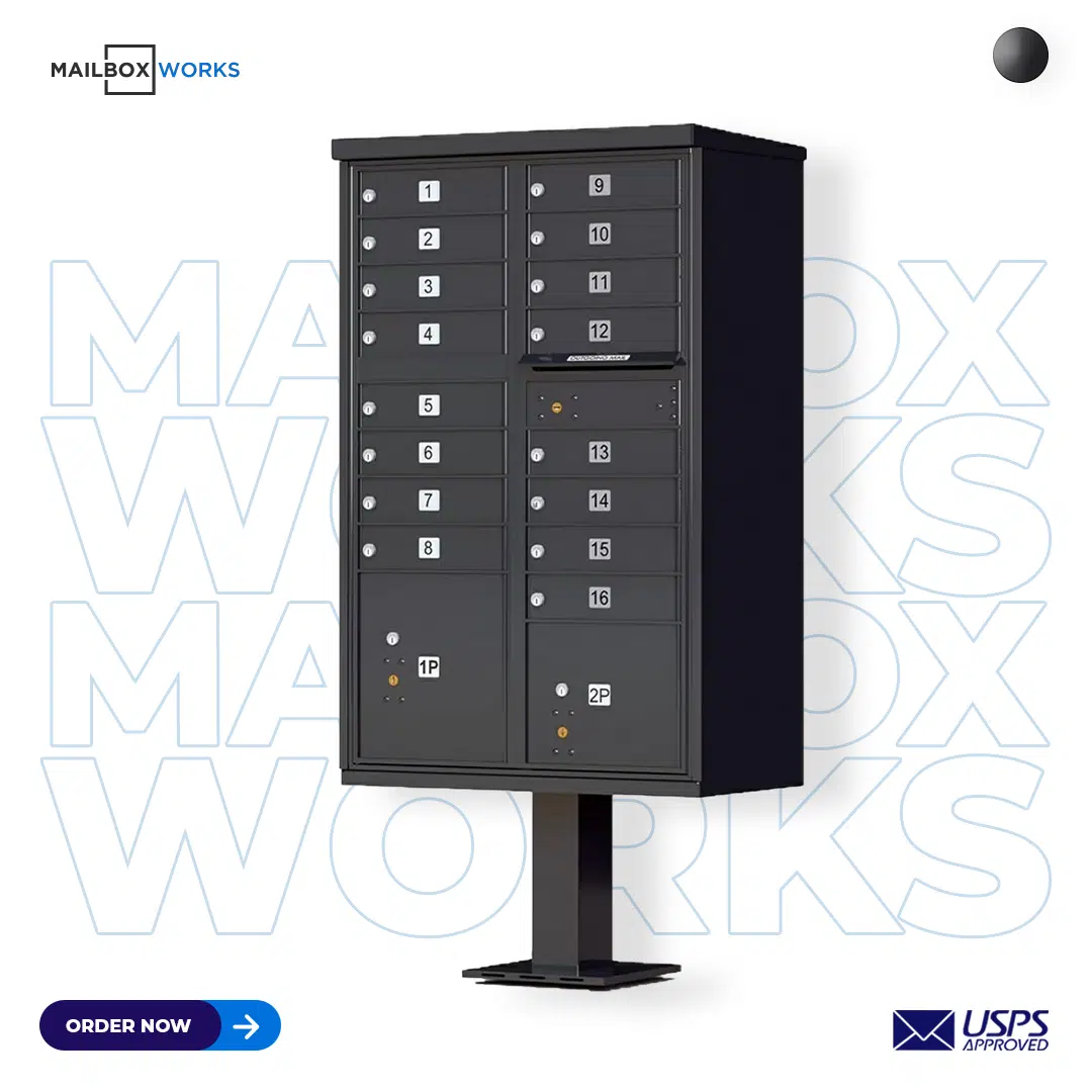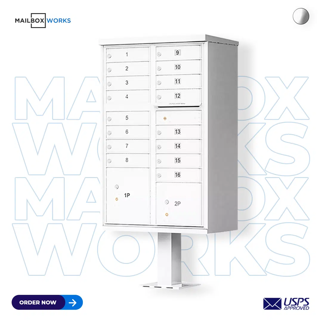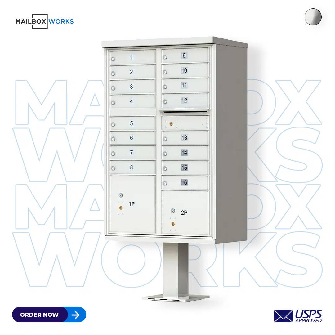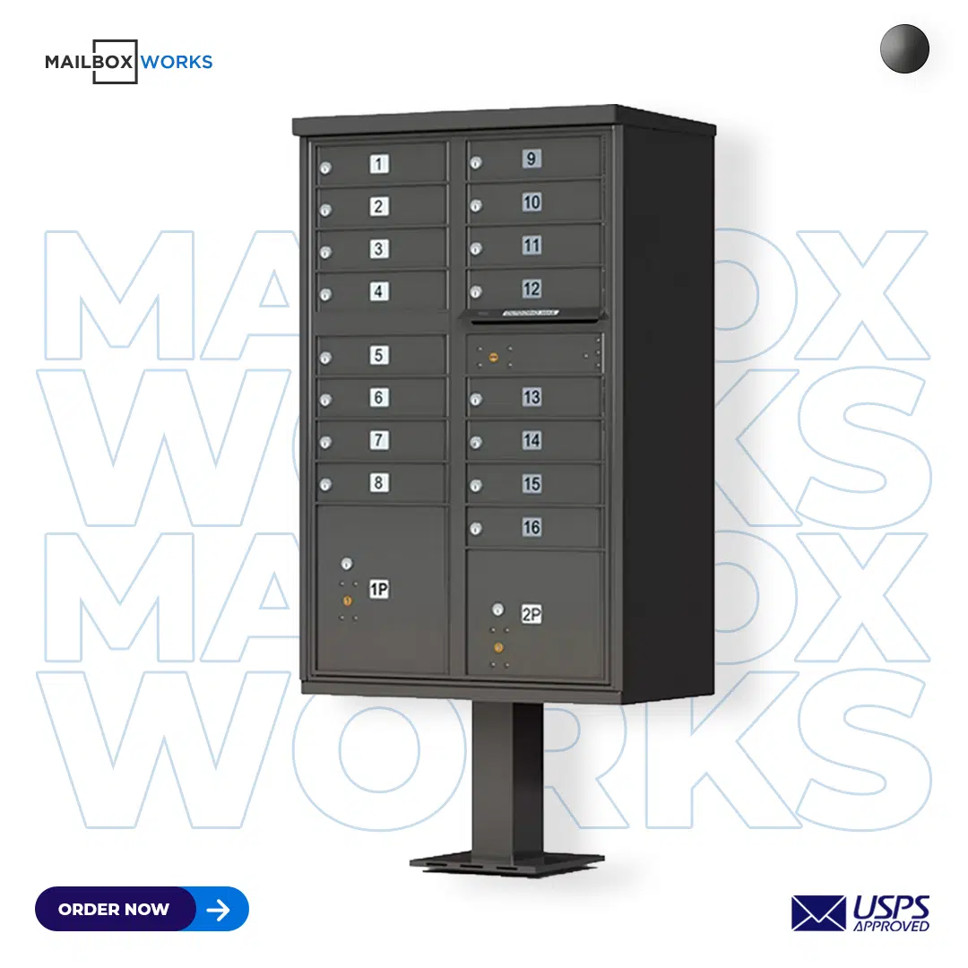 16 Tenant Door CBU Mailbox – USPS Approved (Includes Pedestal)