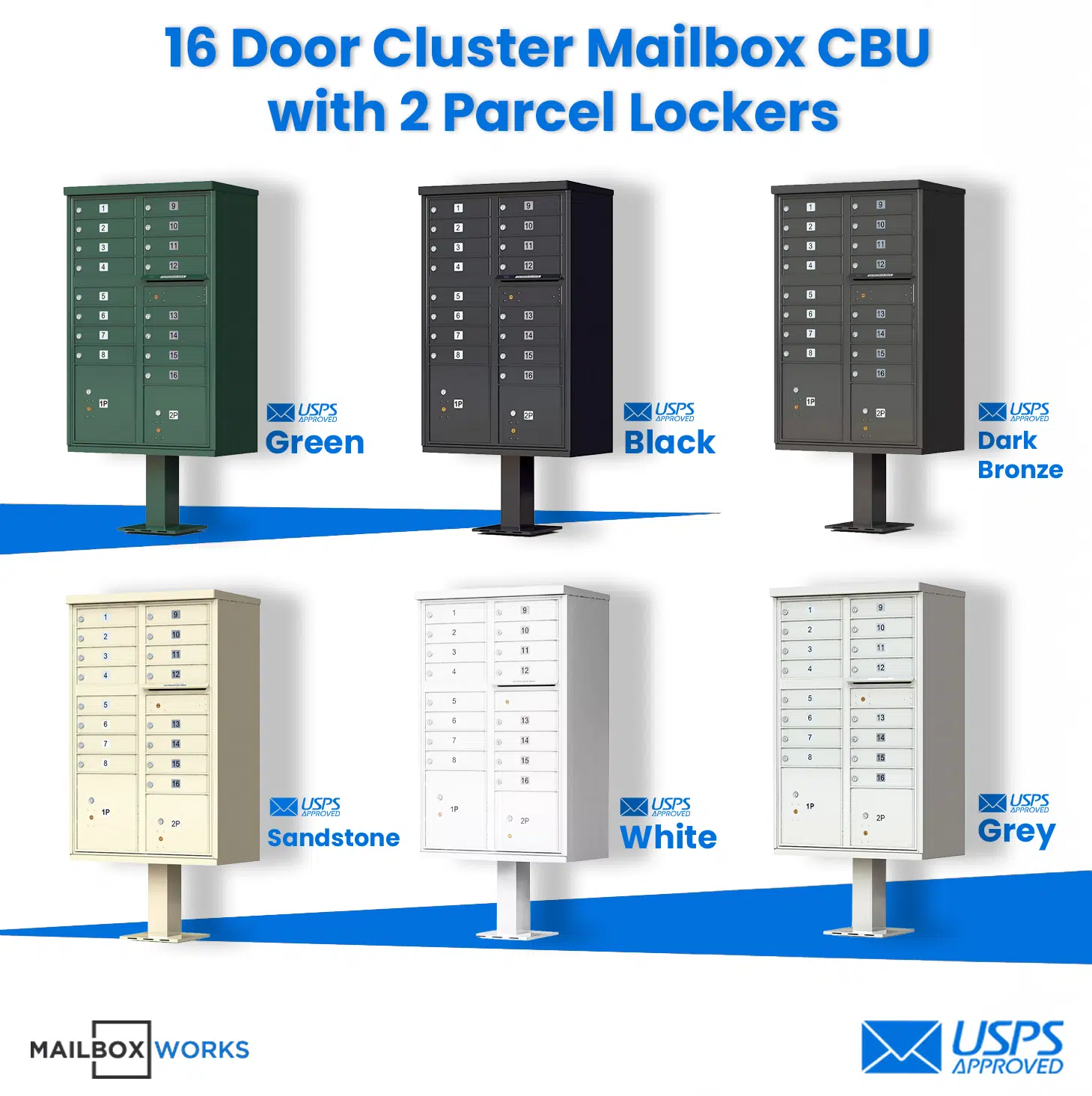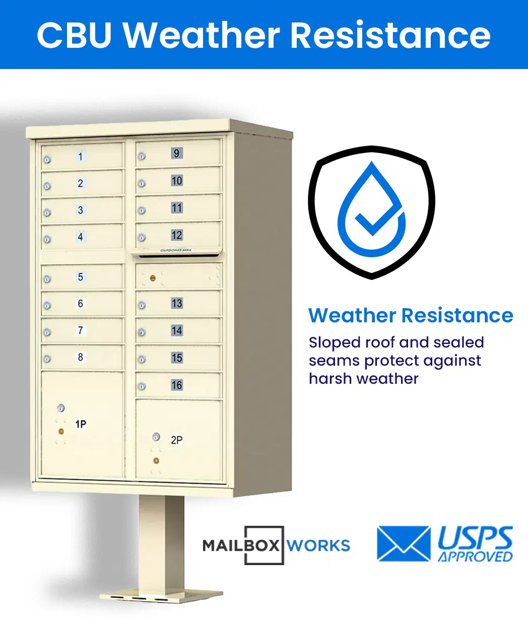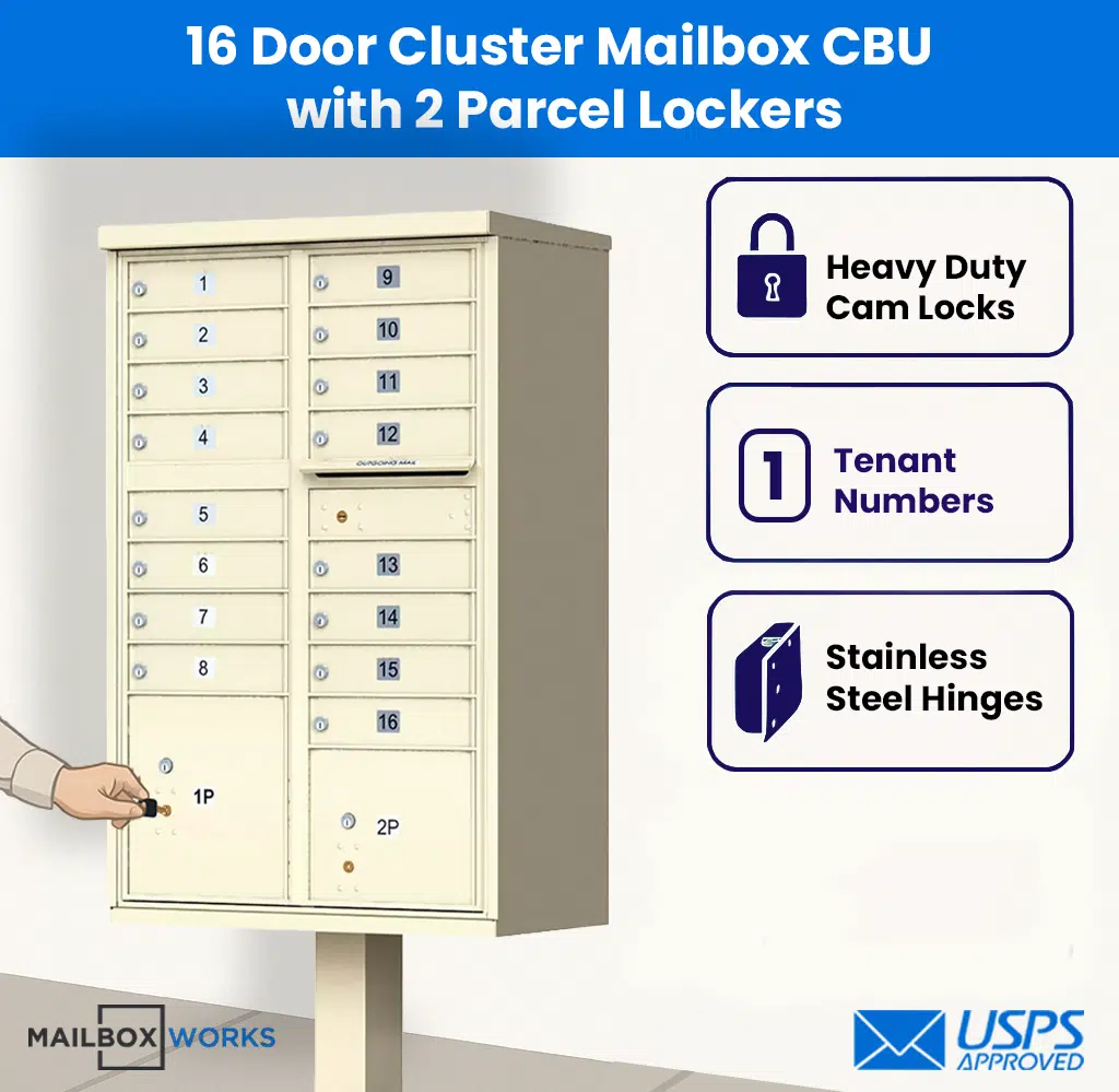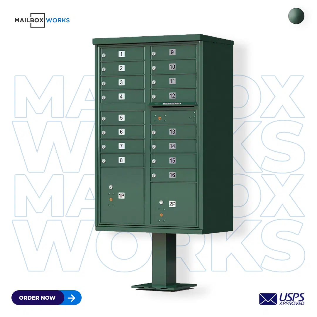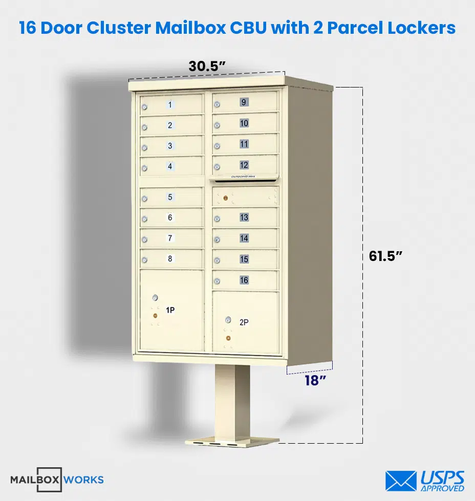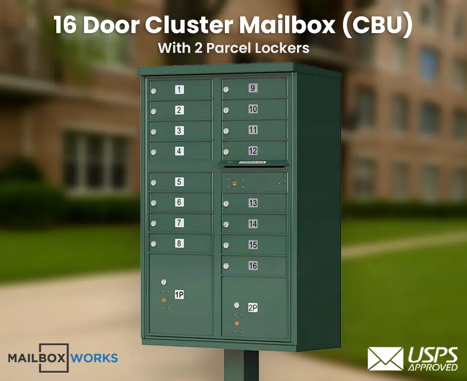 16 Tenant Door CBU Mailbox – USPS Approved (Includes Pedestal)