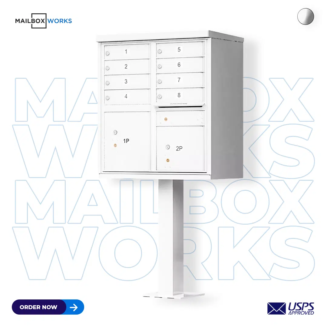 8 Tenant Door CBU Mailbox – USPS Approved (Includes Pedestal)