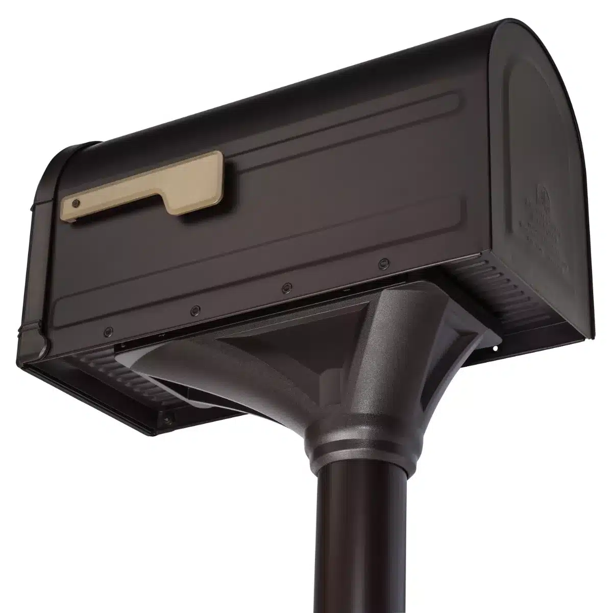 Its molded ABS frame design, cast aluminum knob, and decorative post cover add elegance, while the large compartment easily accommodates mail bundles, magazines, and small packages. The in-ground post is reinforced with a telescoping arm and hidden hardware design for a sleek, professional finish.