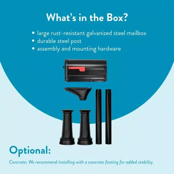 - Complete Kit: Includes decorative mailbox, post, and all necessary mounting hardware.