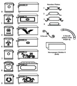 The following MAILBOXES and embellishments can also be added to your light post:
