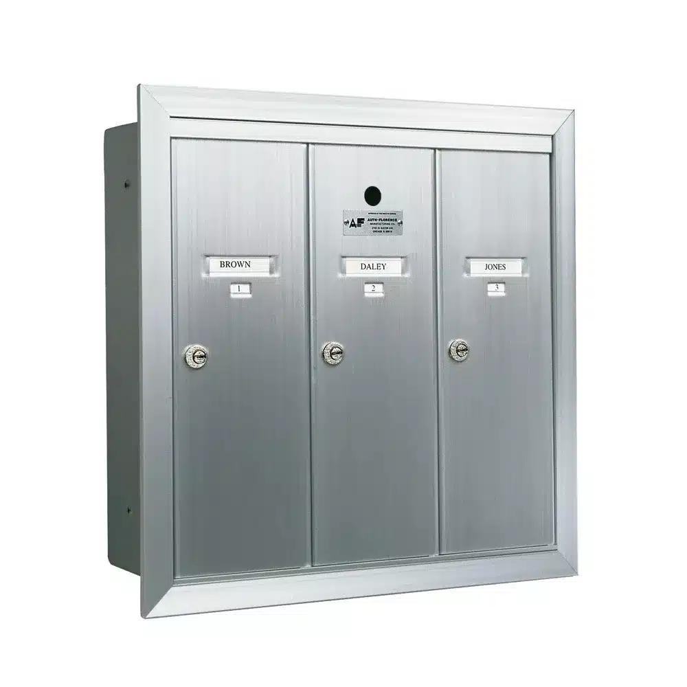 - The Anodized Aluminum Florence 3 Door Vertical Mailbox satisfies the demand for an apartment mailbox, an office mailbox, and a commercial mailbox for multiple tenant buildings