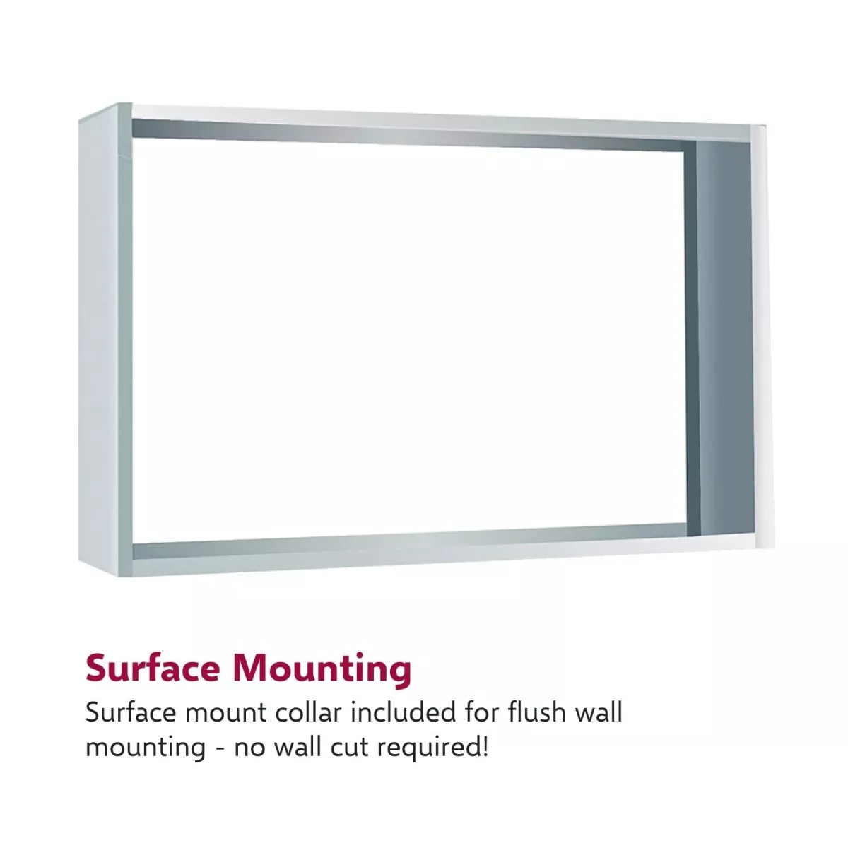 - The unit is meant to be installed recessed into the wall but has the option to come with a surface mounting kit for on the wall installation