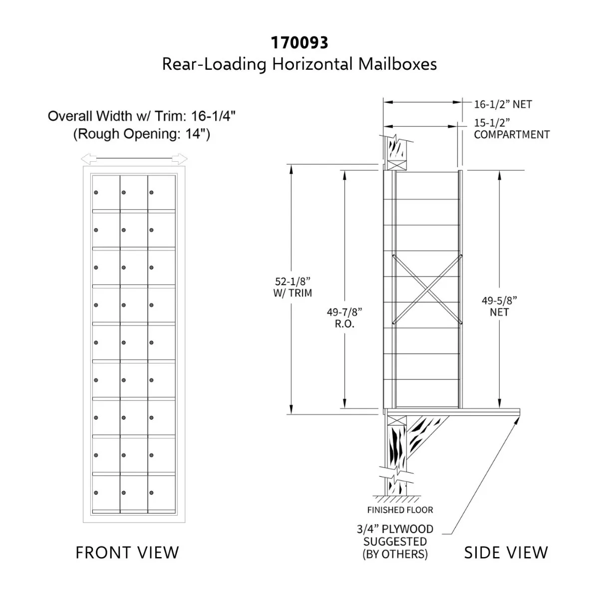 9 Doors High x 3 Doors (27 Tenants) 1700 Horizontal Mailbox Rear-Load Private Distribution in Anodized Aluminum Finish