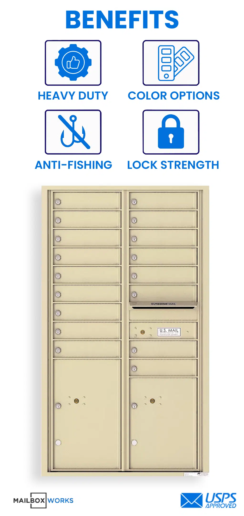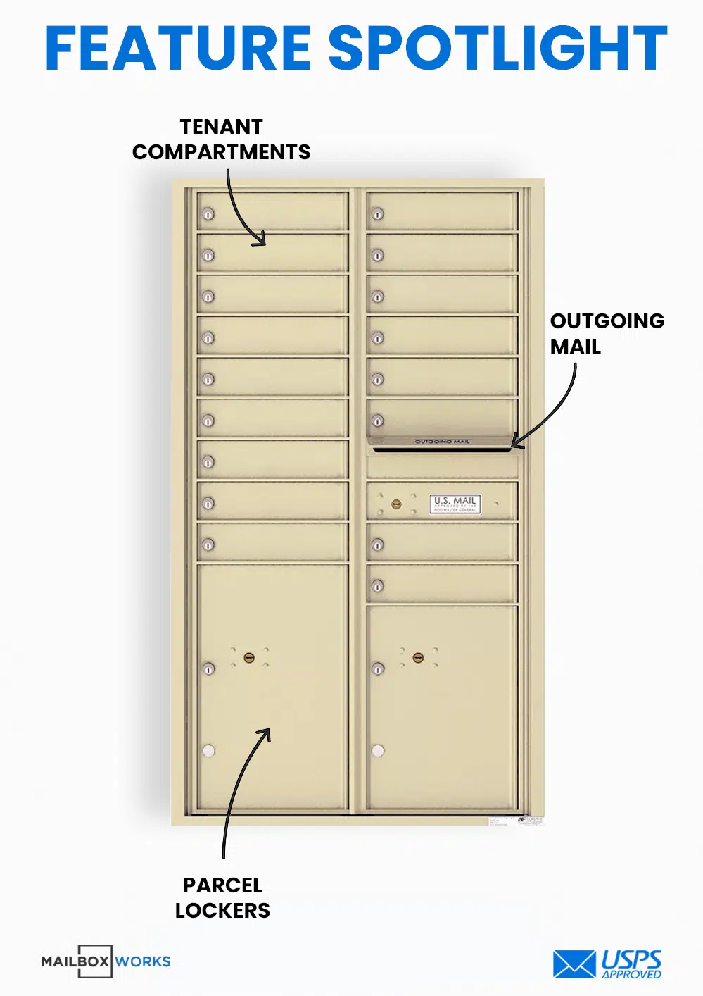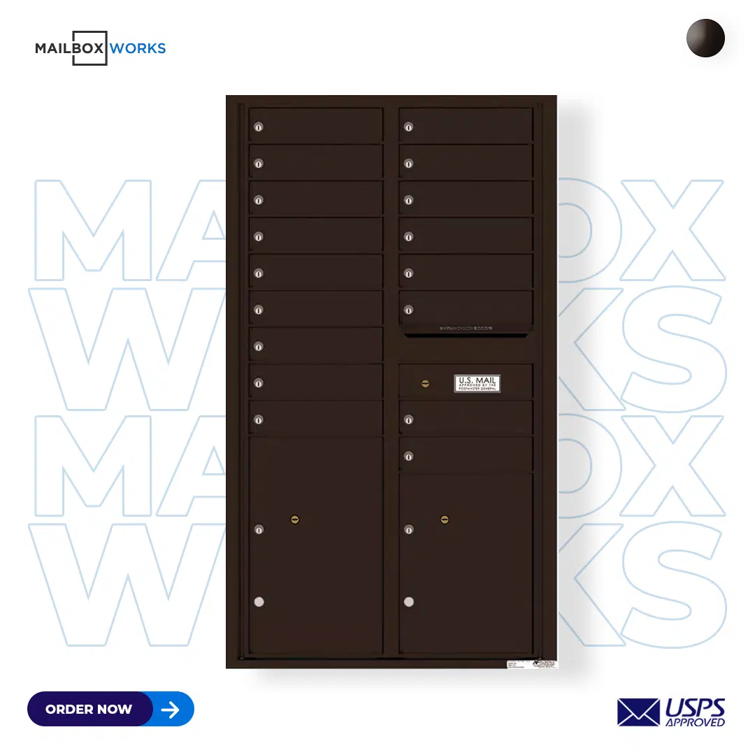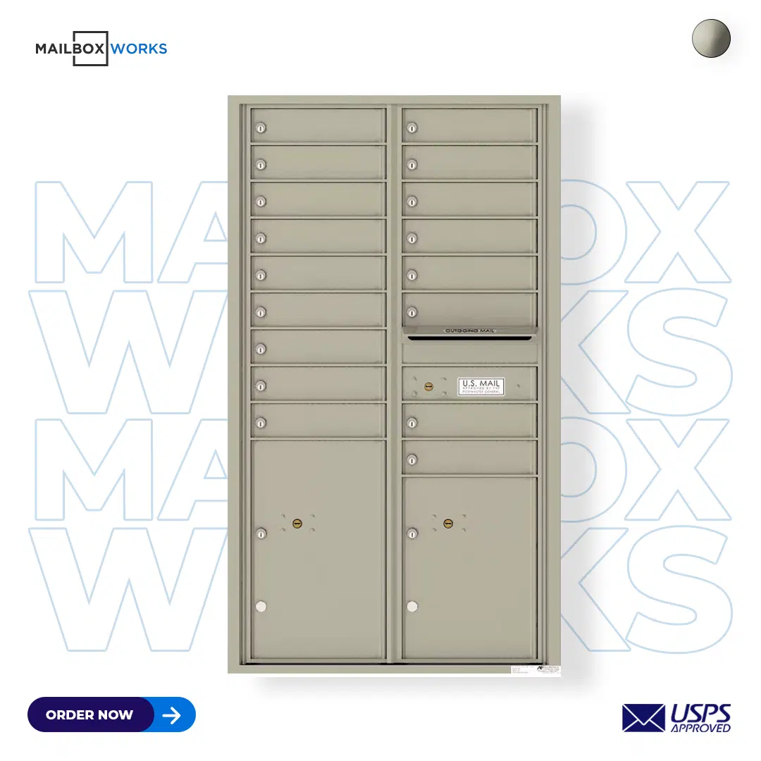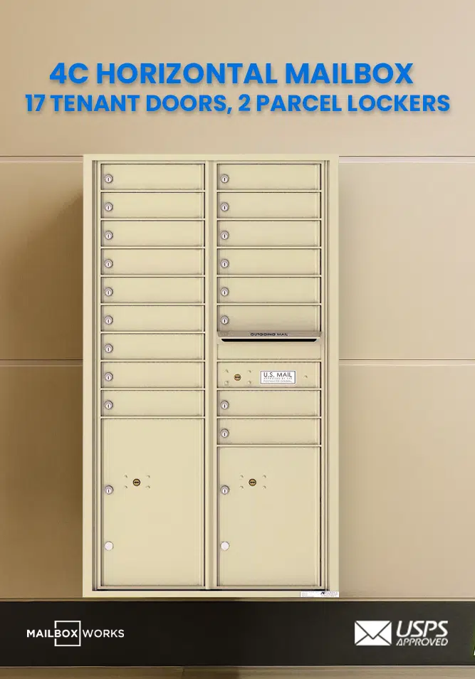 Recessed 4C Horizontal Mailbox – 17 Doors 2 Parcel Lockers – Front Loading – 4C15D-17 – USPS Approved