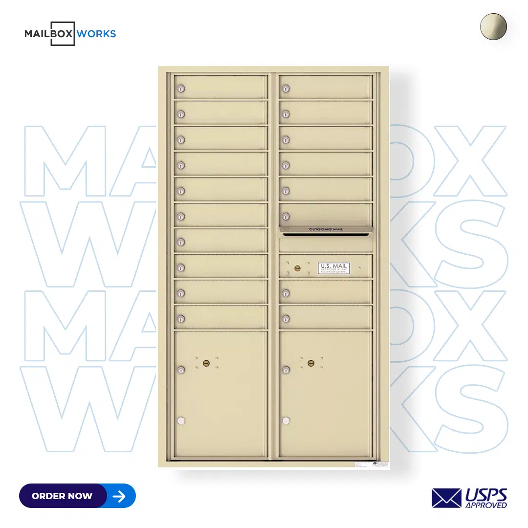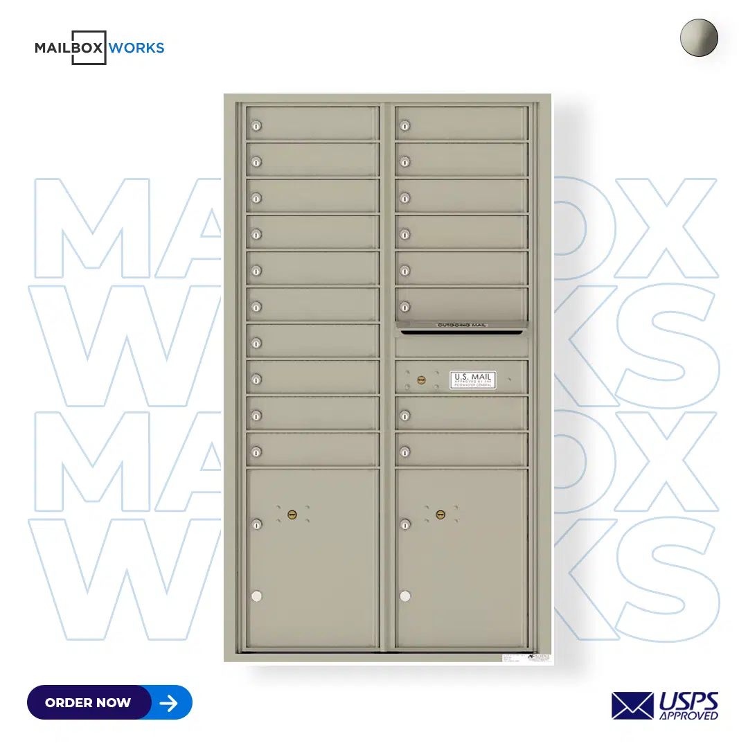 Recessed 4C Horizontal Mailbox – 18 Doors 2 Parcel Lockers – Front Loading – 4C15D-18 – USPS Approved