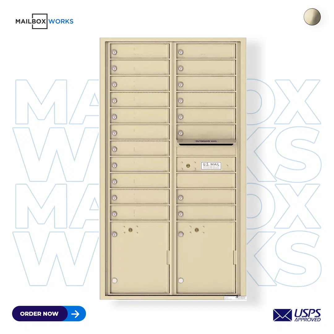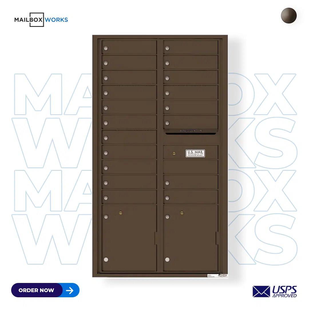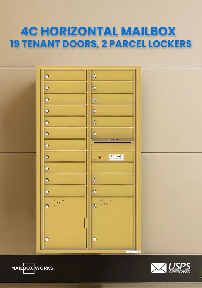 Recessed 4C Horizontal Mailbox – 19 Doors 2 Parcel Lockers – Front Loading – 4C16D-19 – USPS Approved