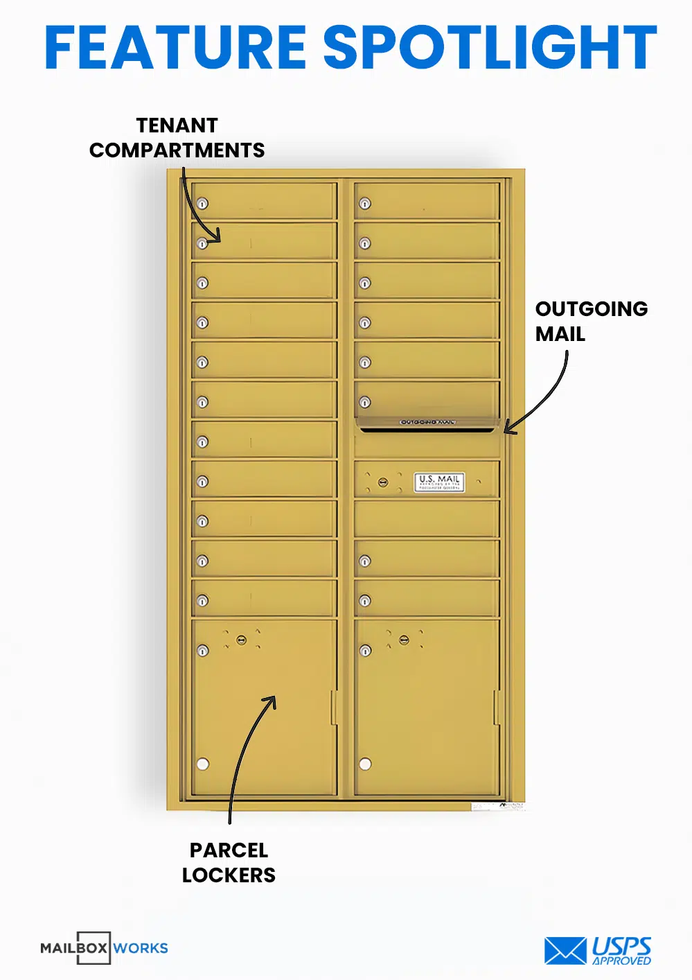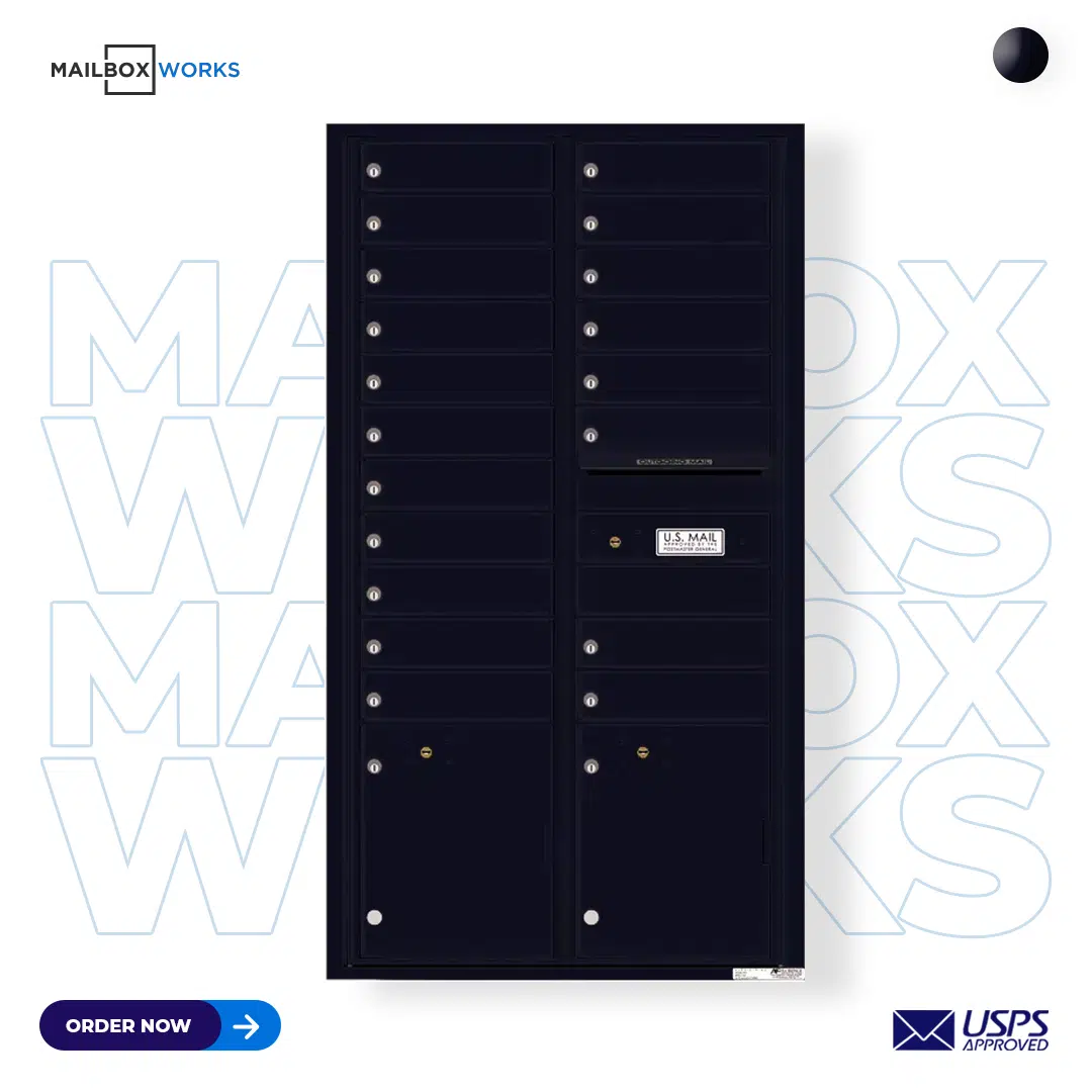- Includes: Mailbox, Tenant Door Locks With 3 Keys Each, 19 Tenant Compartments, 2 Parcel Compartments, Outgoing Mail Slot