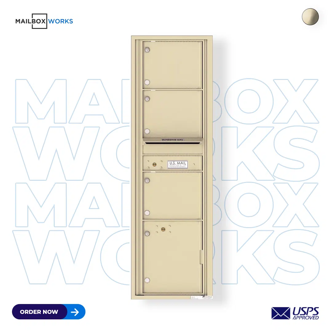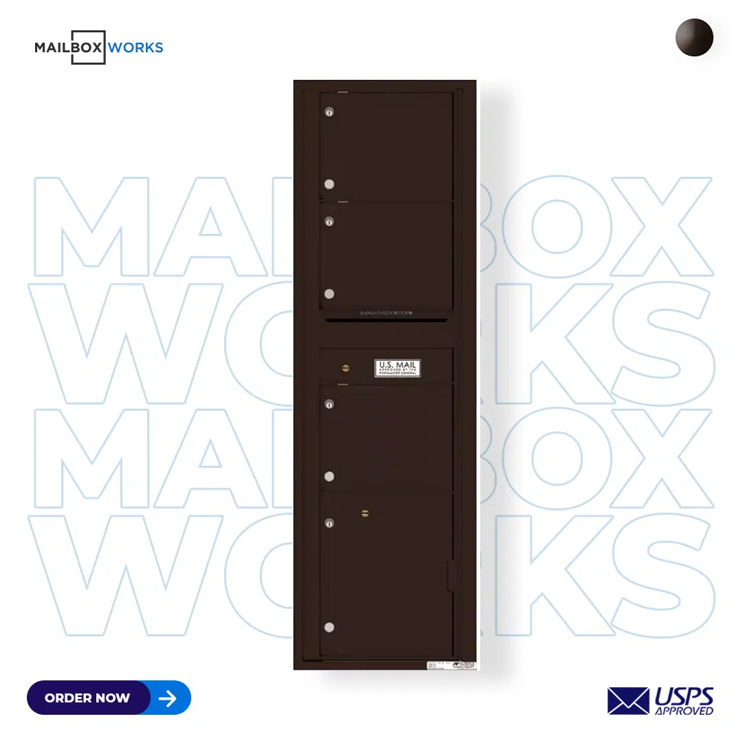 FlorenceRecessed 4C Horizontal Mailbox – 3 Doors 1 Parcel Locker – Front Loading – 4C07D-03 – USPS Approved