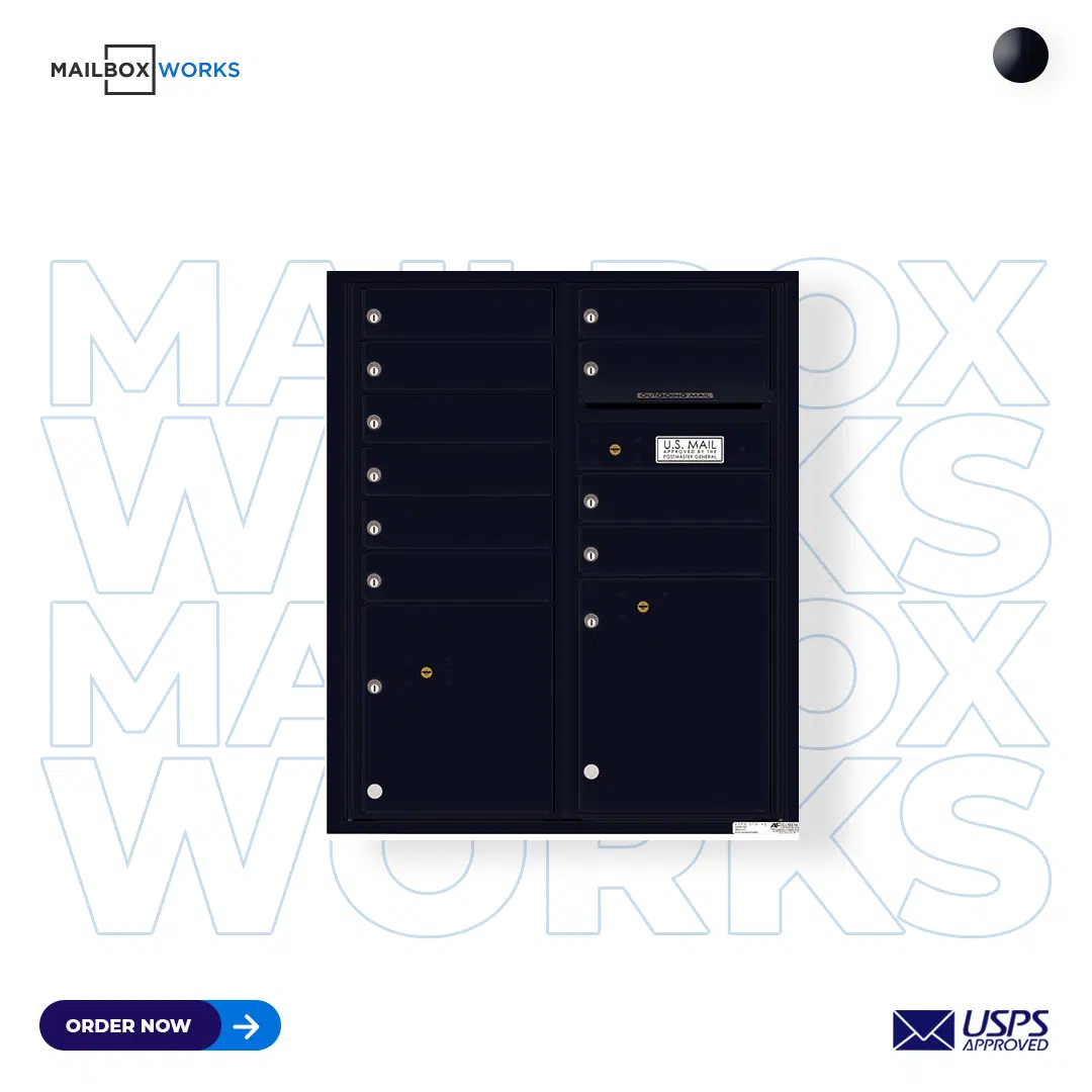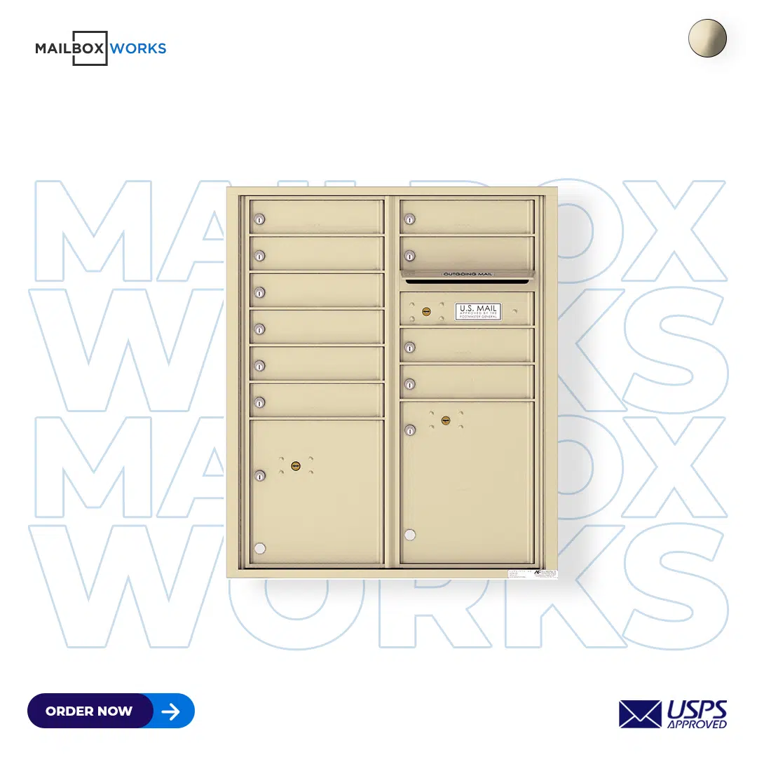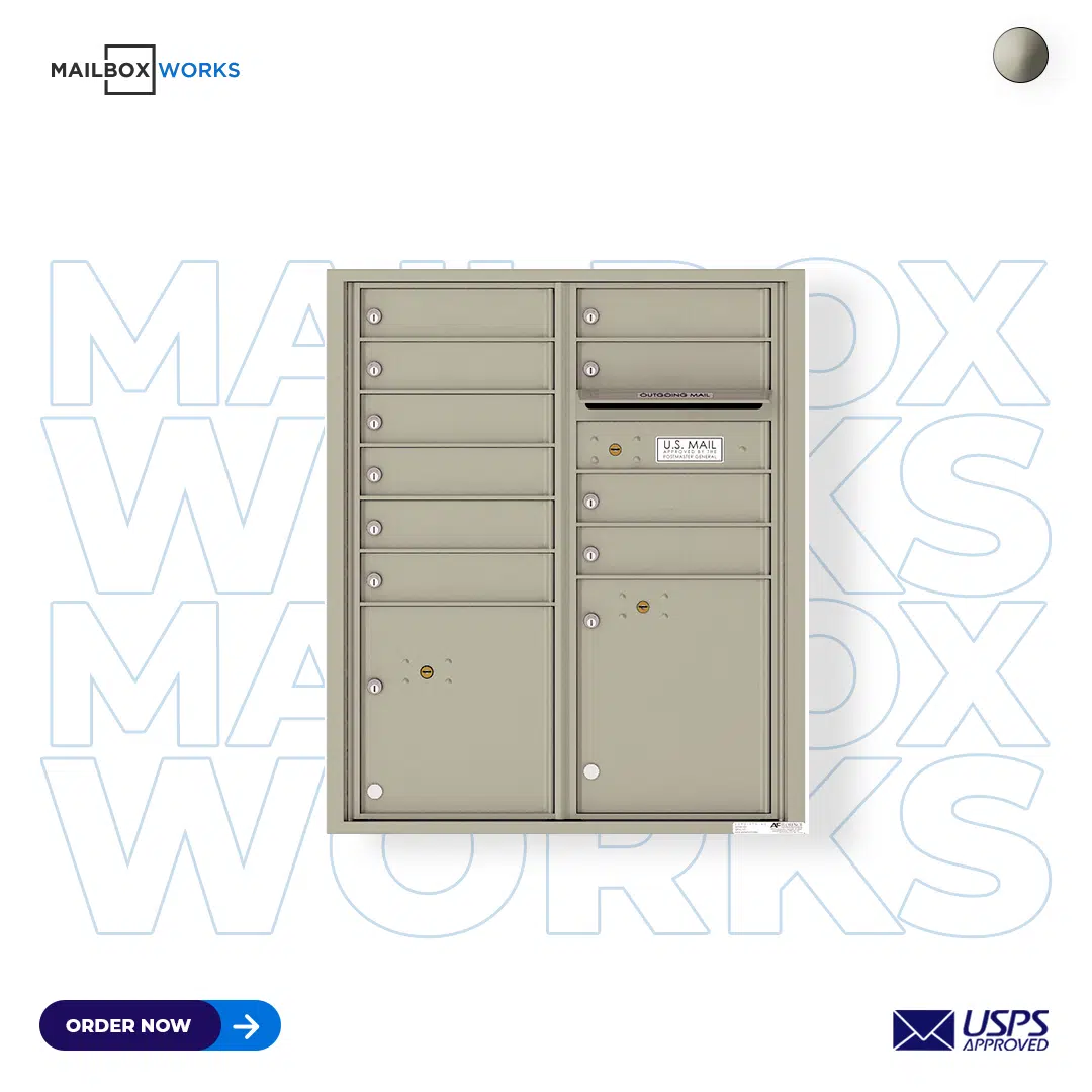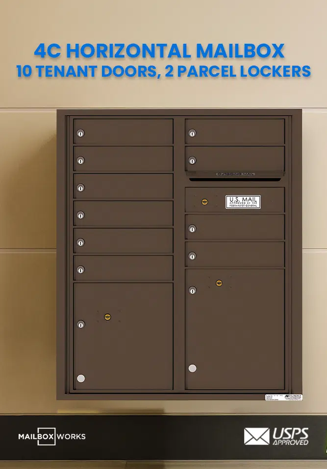 Recessed 4C Horizontal Mailbox – 10 Doors 2 Parcel Lockers – Front Loading – 4CADD-10 – USPS Approved