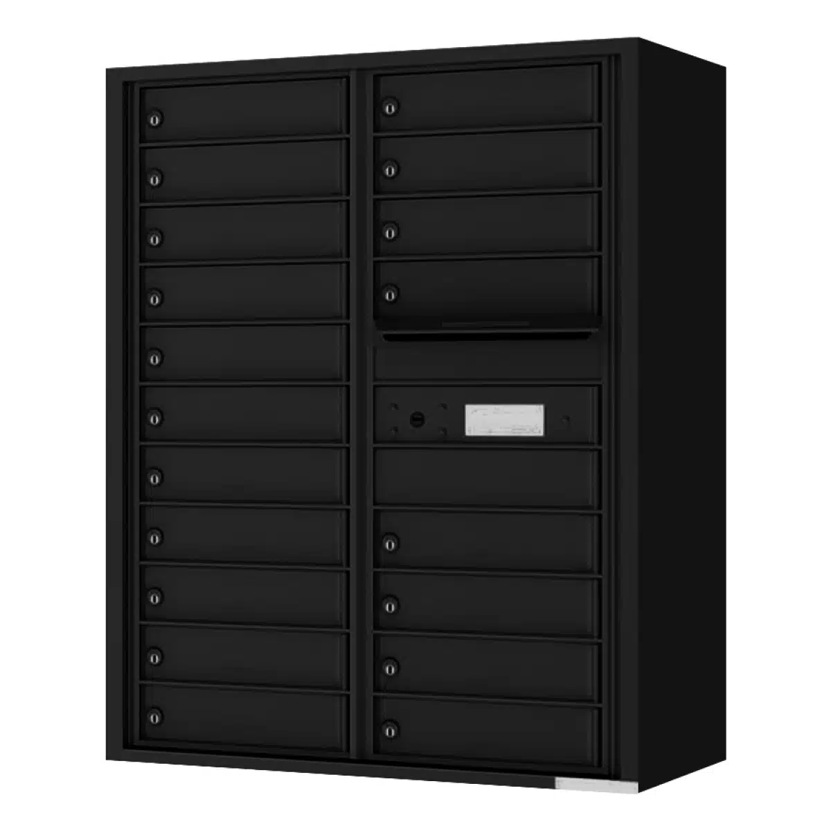 - Includes: Mailbox, Surface Mount Collar, Tenant Door Locks With 3 Keys Each, 19 Tenant Compartments, 0 Parcel Compartments, Outgoing Mail Slot