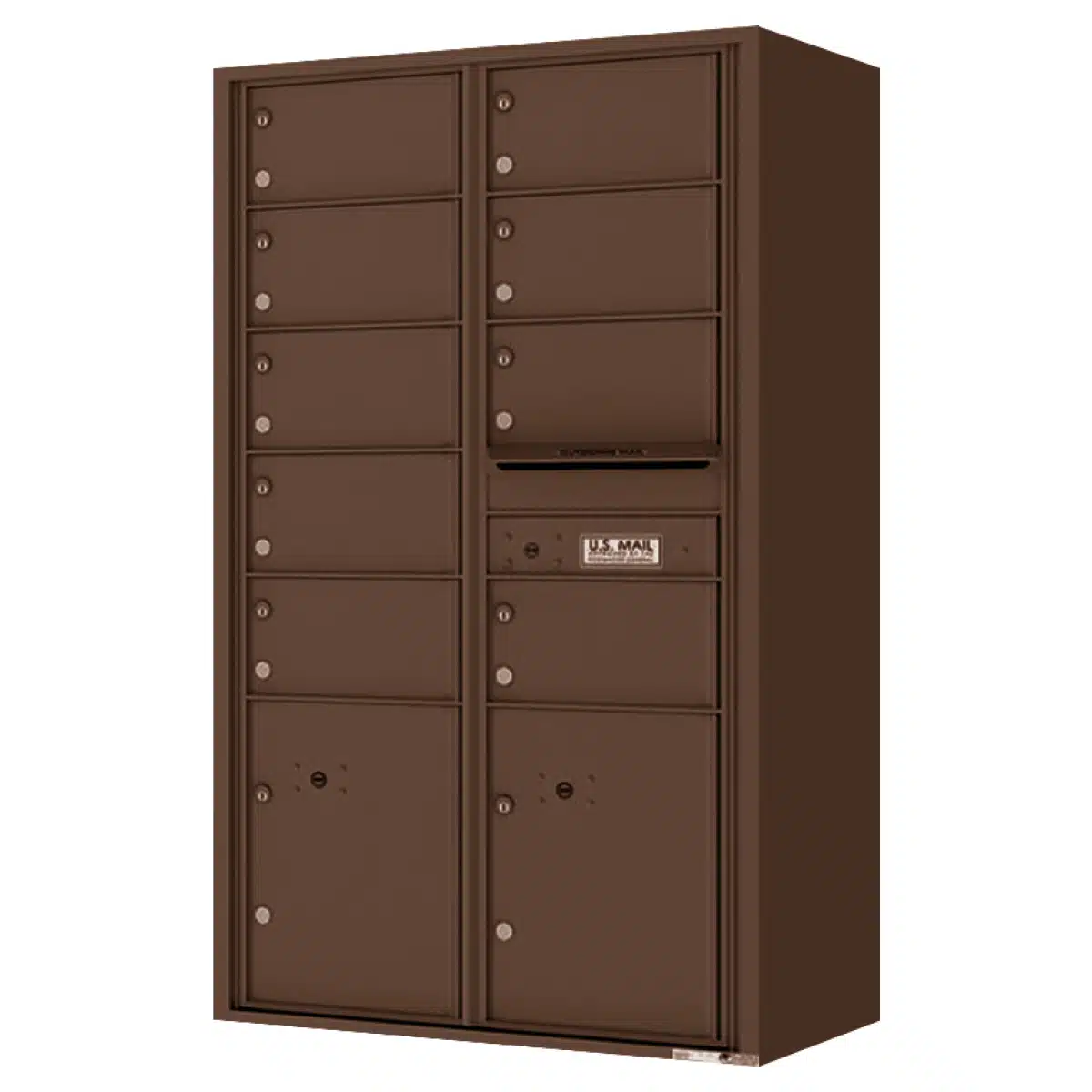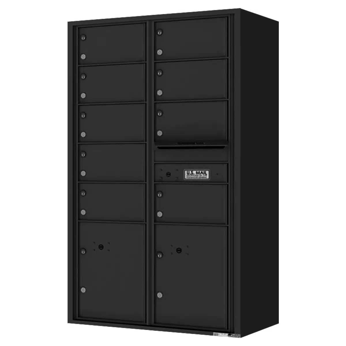 - This front-loading unit features 9 tenant doors and 2 parcel lockers