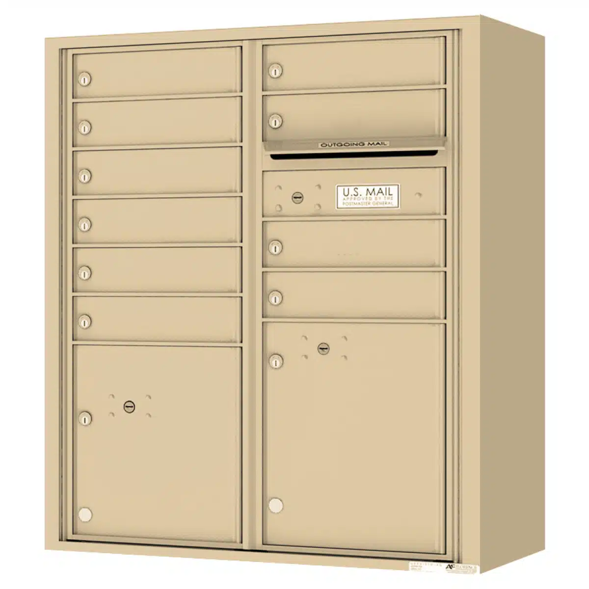 Florence Surface Mount 4C Horizontal Mailbox – 10 Tenant Doors, 2 Parcel Lockers – Front Loading – ADA Compliant Max Height – Private Access