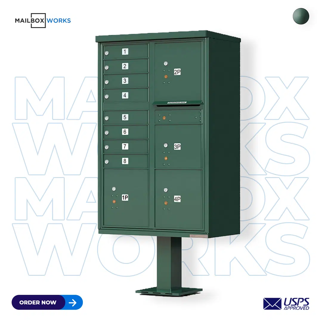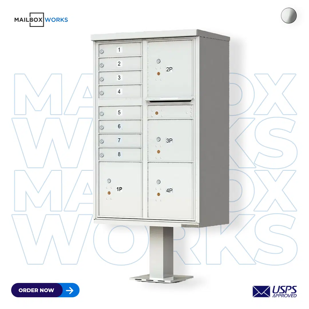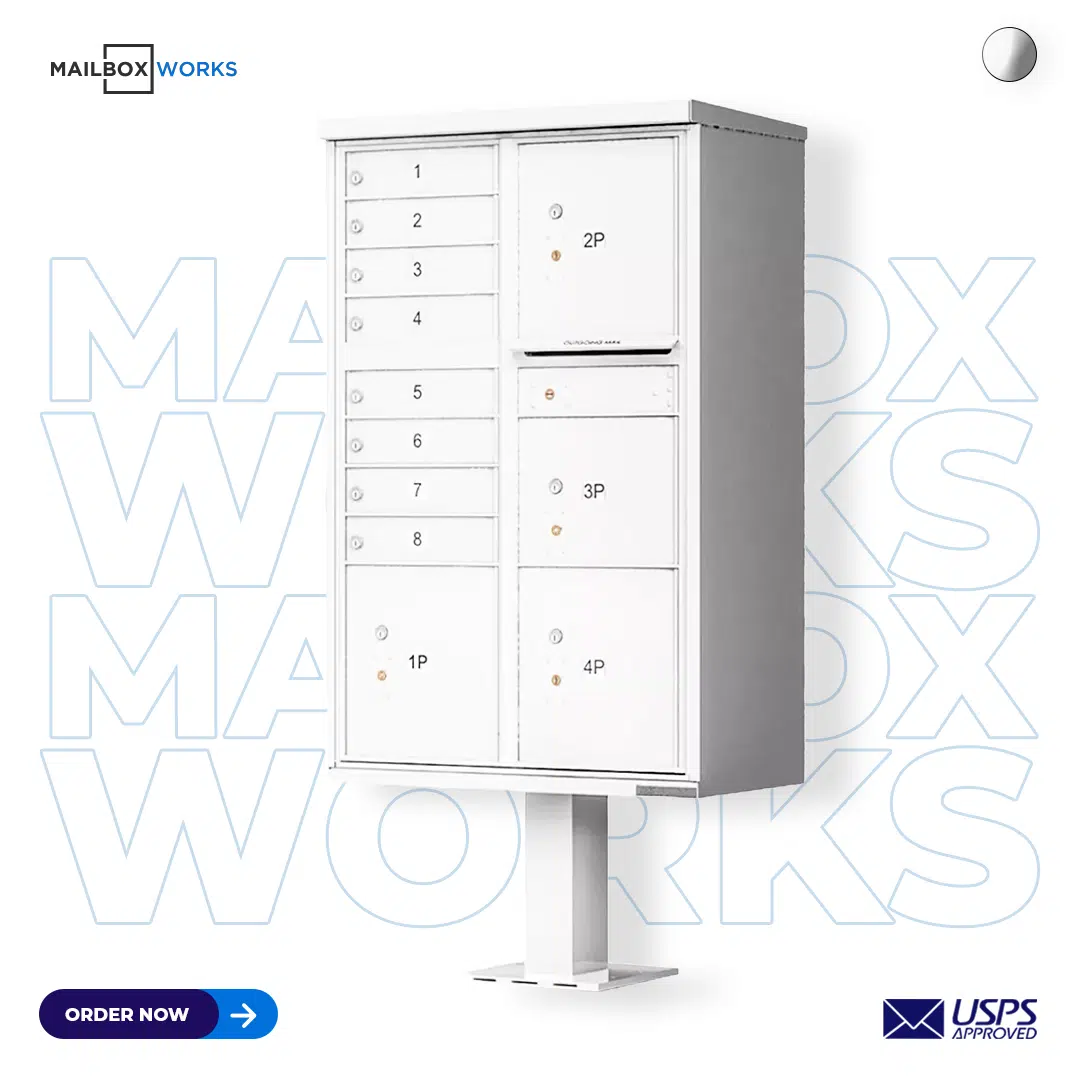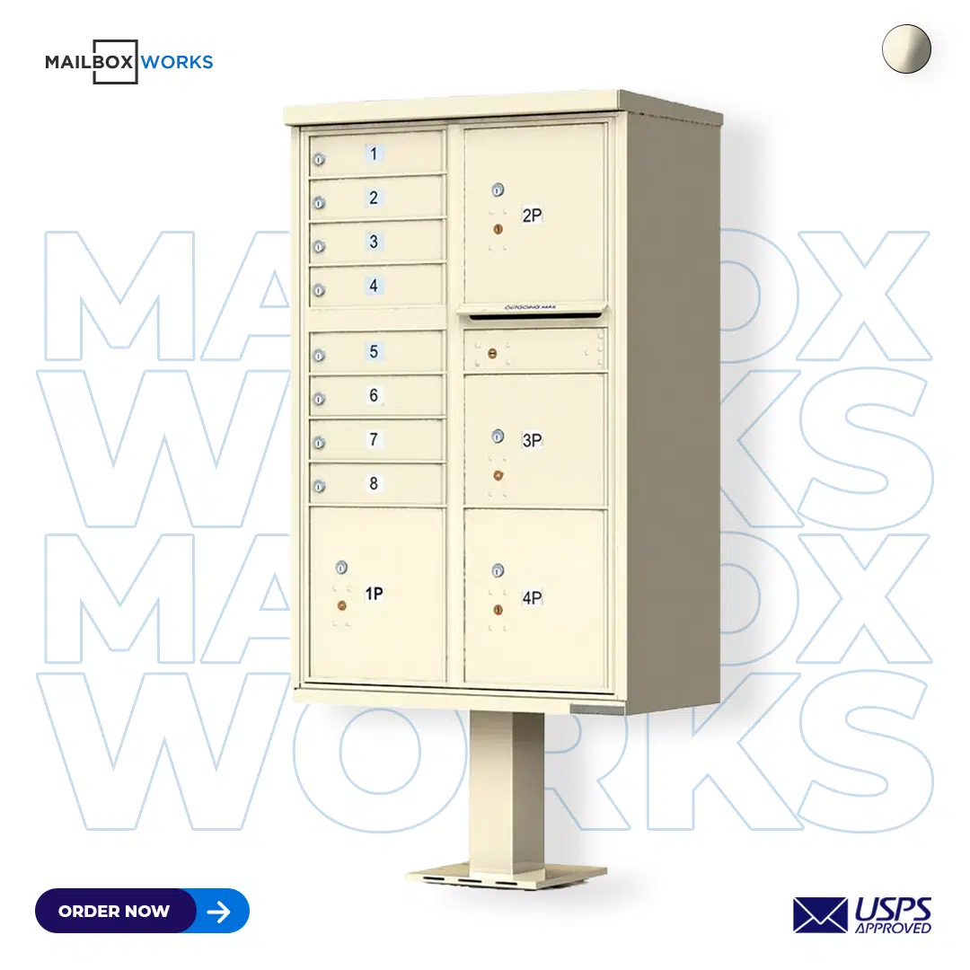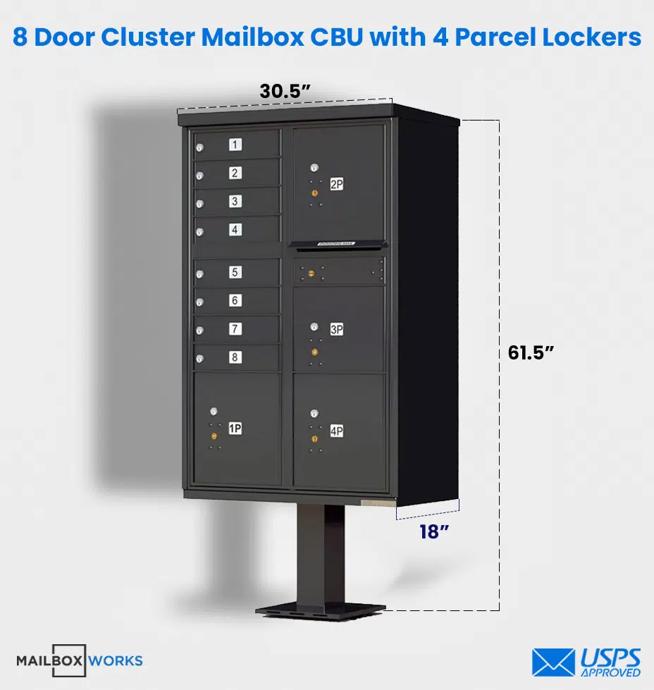 Call us or chat with a customer care rep if you have any questions or need help placing an order for 8-door CBU mailboxes with 4 door parcel locker.