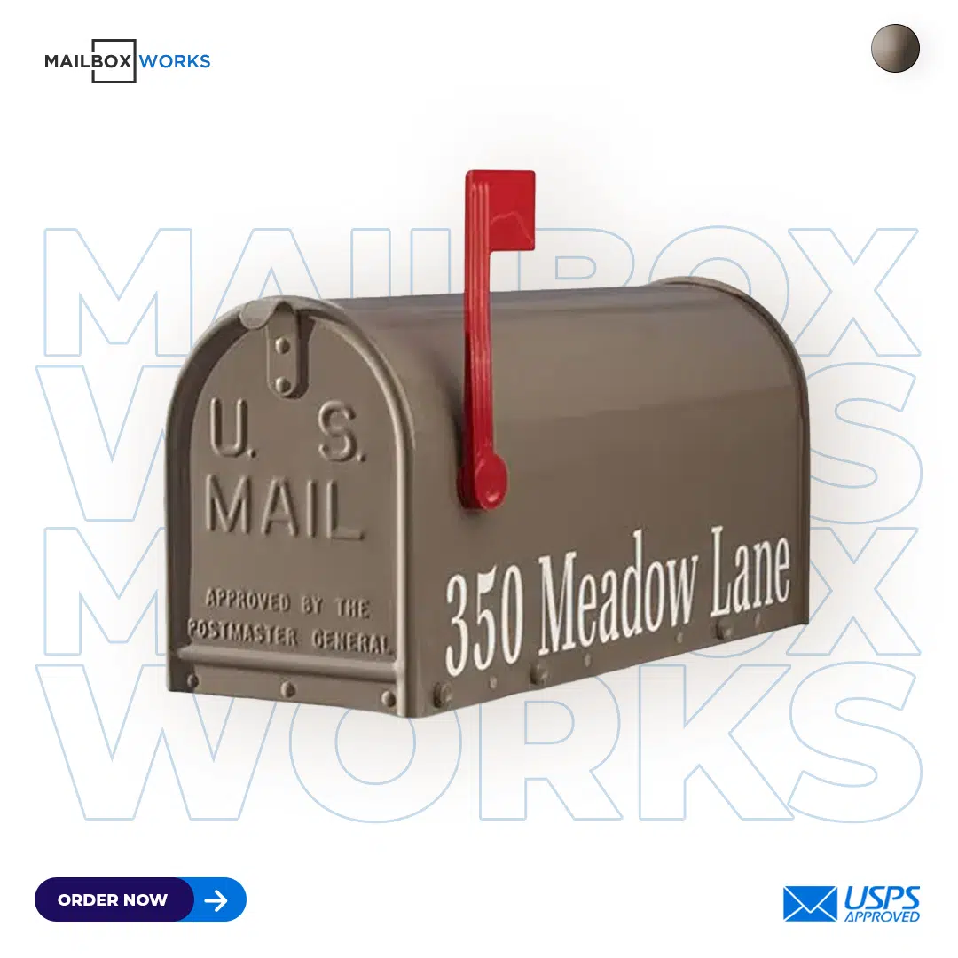 - Customize your mailbox with your street name and address during checkout. These vinyl decals are applied to the sides of the mailbox and come with a 7-year guarantee.