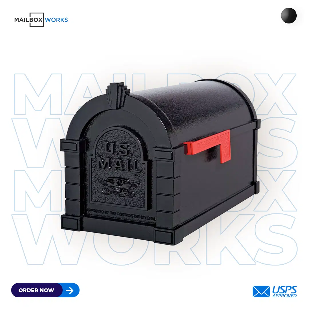 - This decorative mailbox is virtually maintenance-free since it is made of cast aluminum and covered with a powder coat paint finish so it will never rust