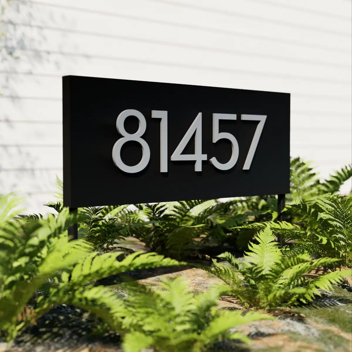 Update your home’s curb appeal with a modern address sign with stakes. Your address will reflect a modern style with a hint of nature when colorful succulents are added.