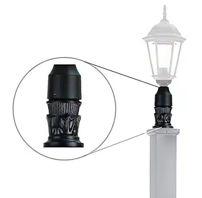 This transition piece is used to transition a 3″ OD light globe to an Imperial 2 3/8″ OD pole. It can be used to transition finials to specific poles as well.