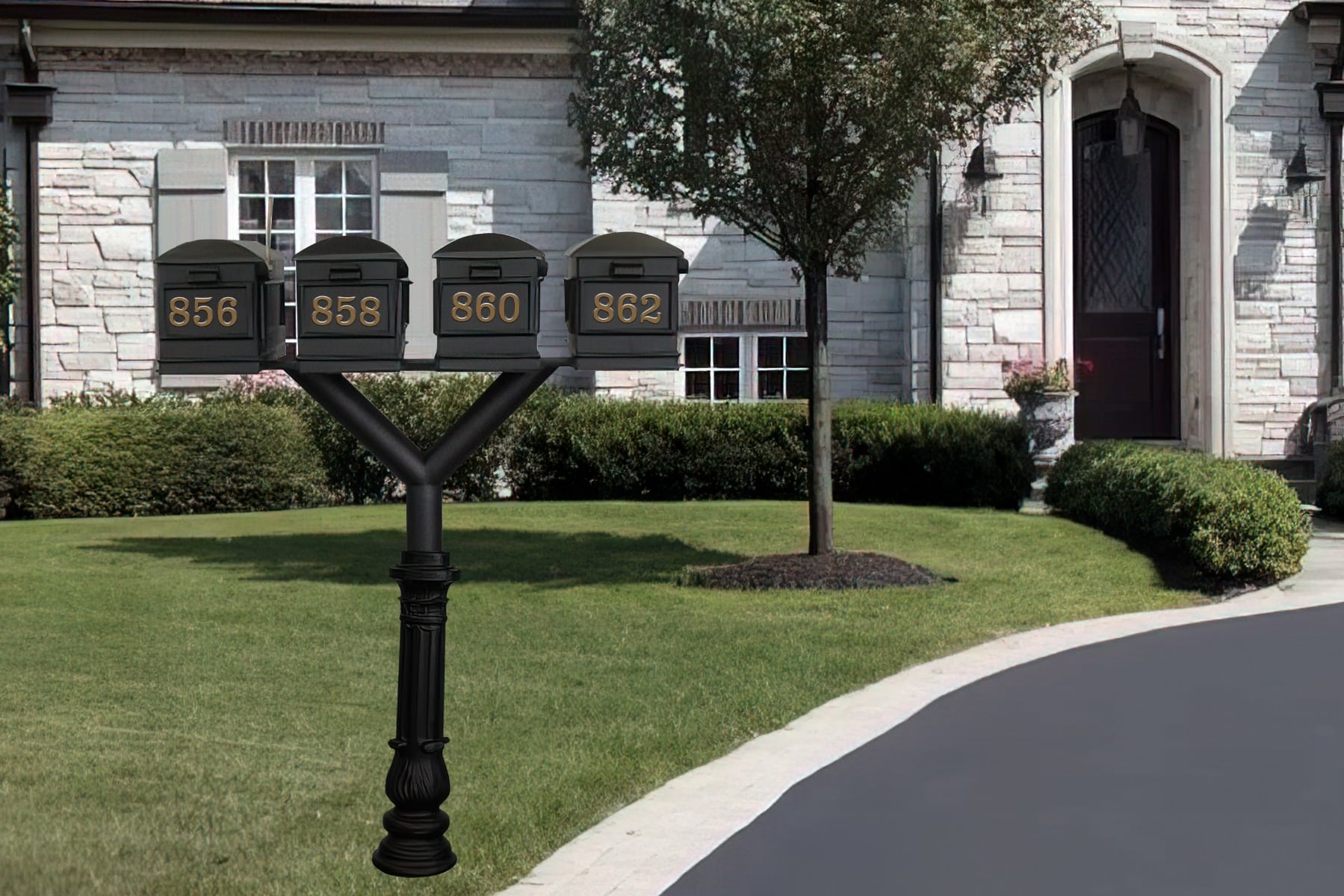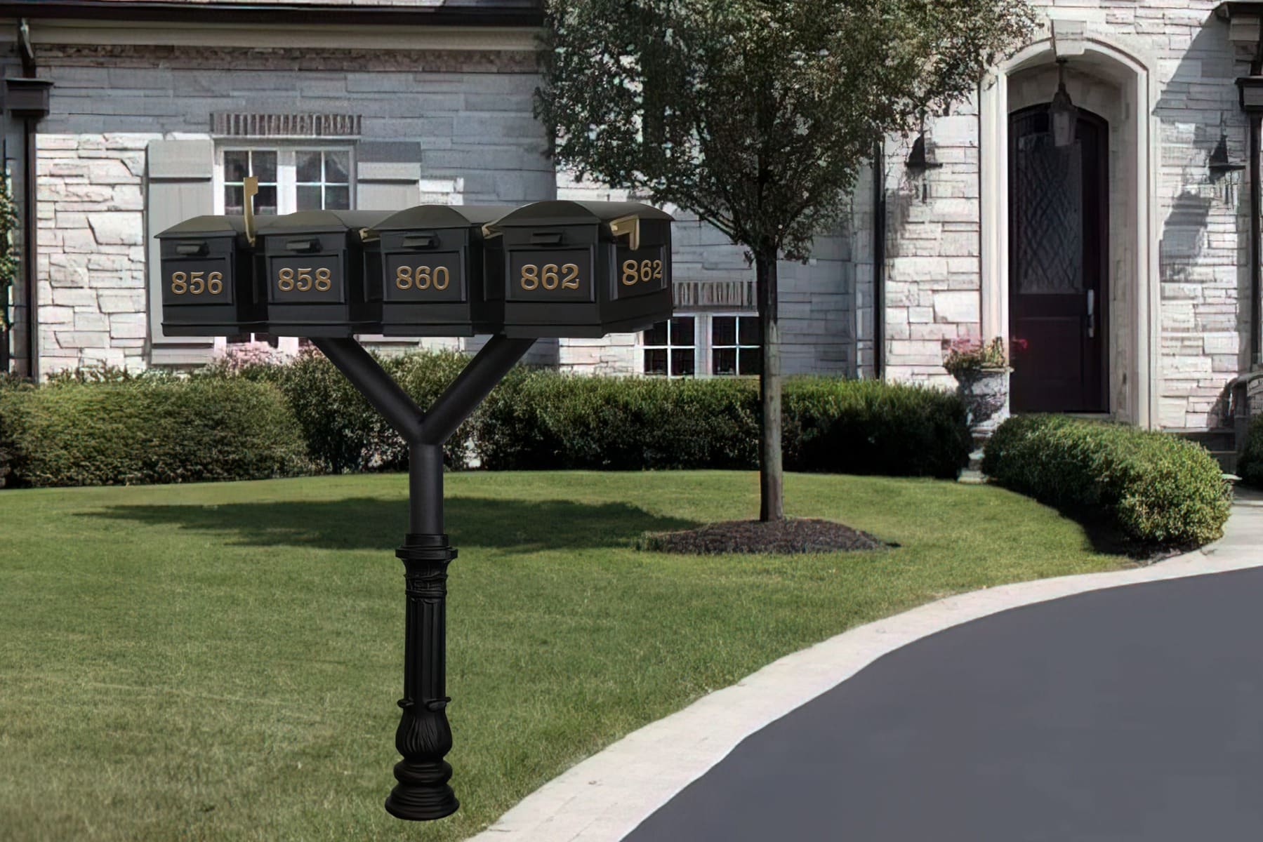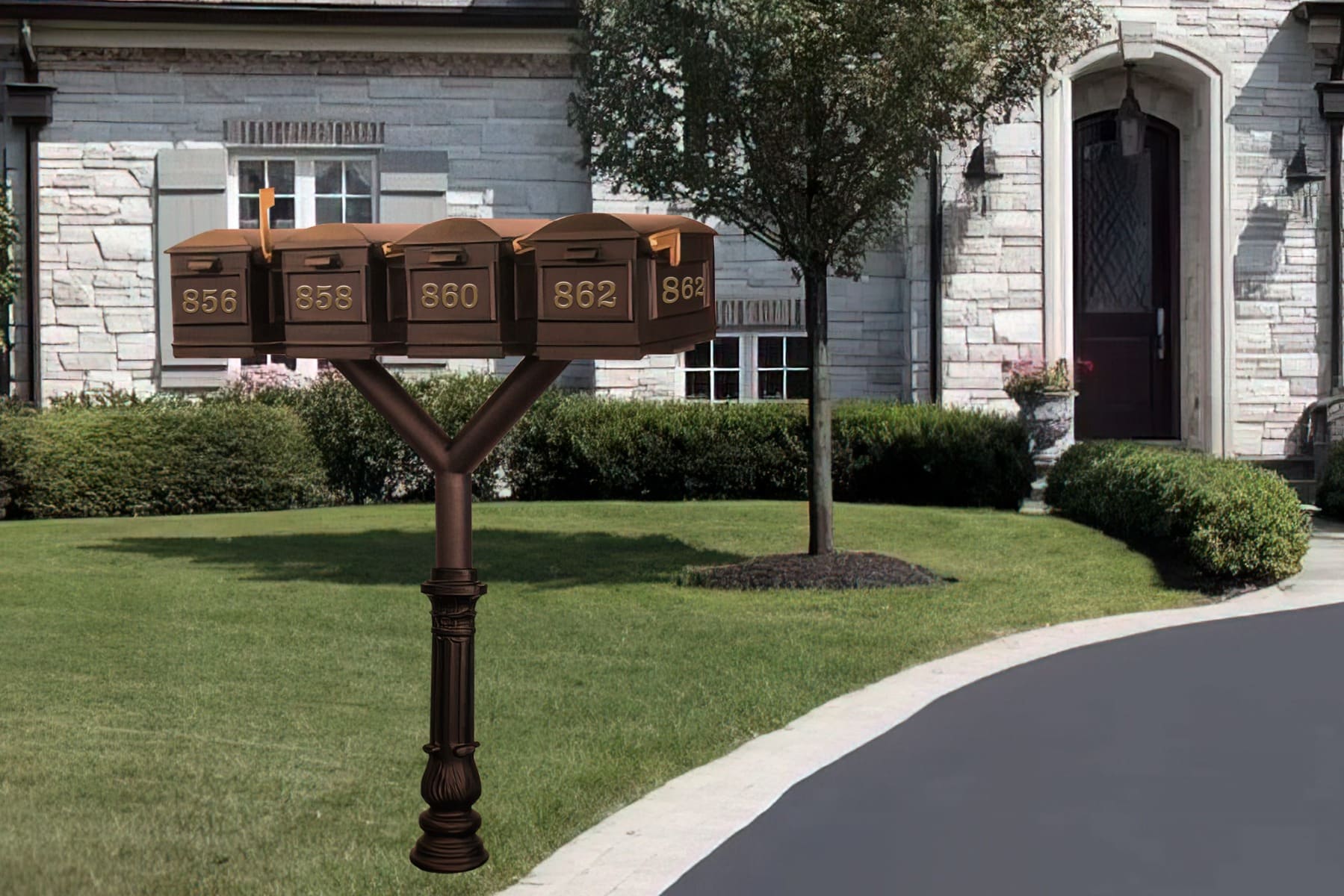 - Quad “Y” Design: Supports four Lewiston mailboxes on one post, ideal for multi-family or shared properties.