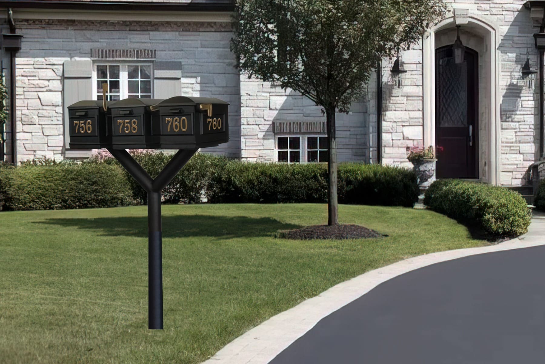 Ideal for multi-family residences or high-traffic properties, this Triple “Y” mailbox post system combines practicality, security, and elegance in one premium solution.