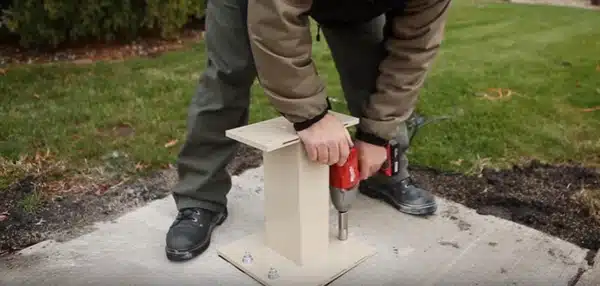 Option 1 – Technician installs new pedestal-mounted mailbox. In this scenario, the installer drills new anchor bolts into existing concrete and mounts a new pedestal mailbox. |