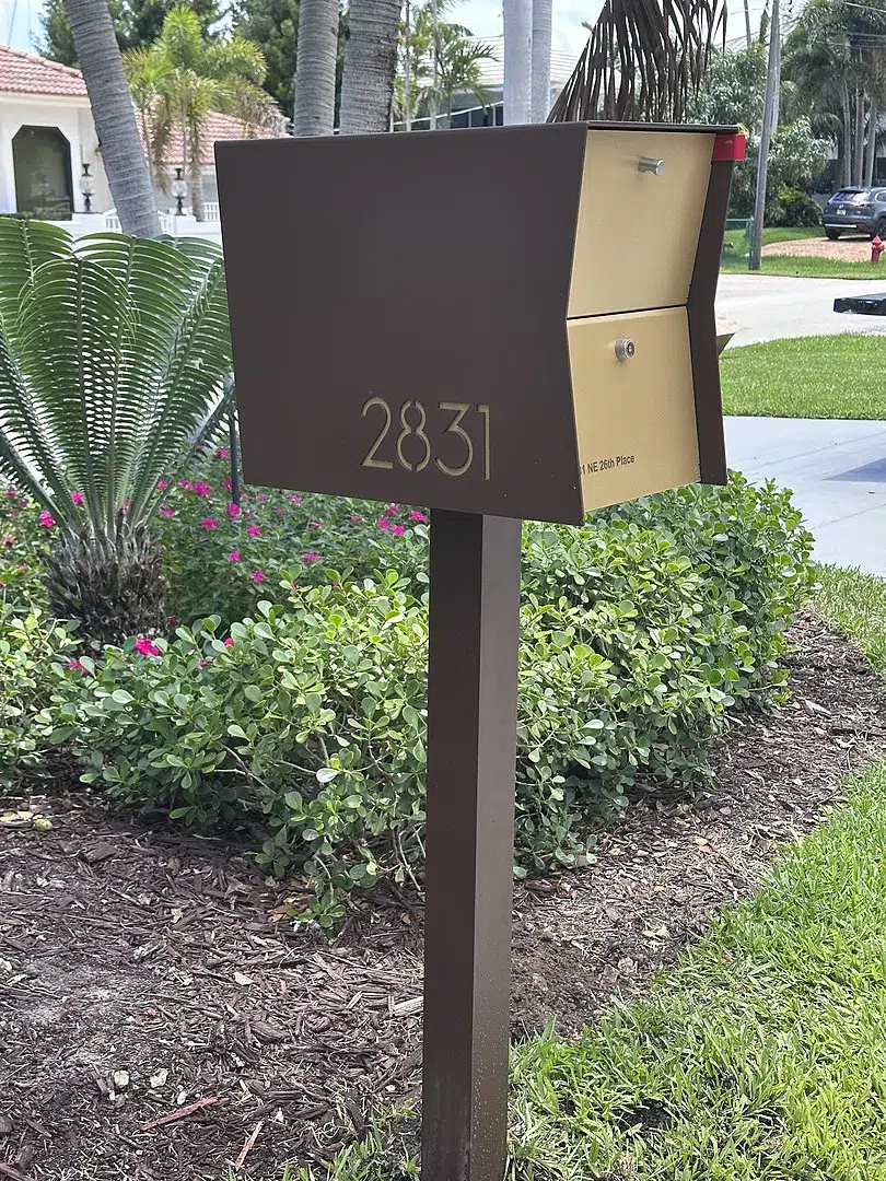 - Durable, Weather-Resistant Construction: Made from heavy-duty .125″ 5052-H32 aluminum, this mailbox is coated in marine-grade paint for exceptional weather resistance, while its base features 18-gauge stainless steel for enhanced durability.