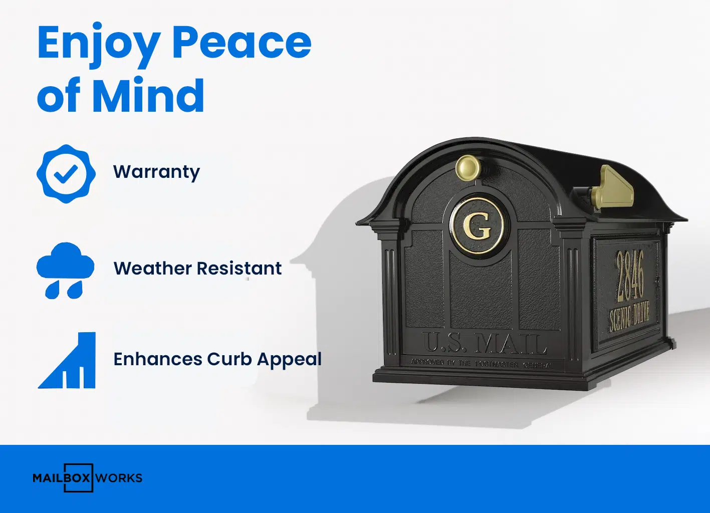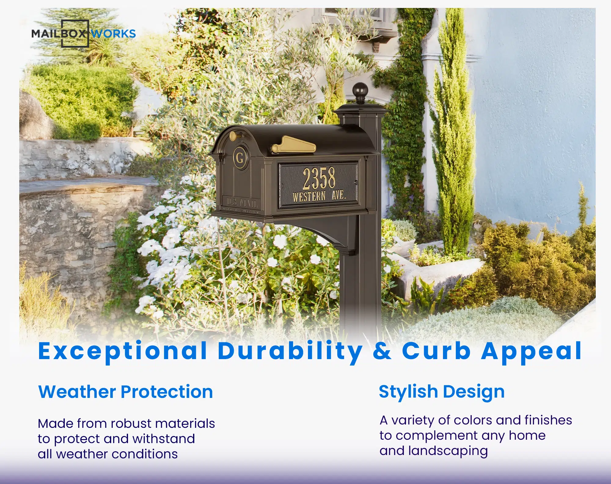- Purchase optional personalized mailbox address plaques for mailbox sides