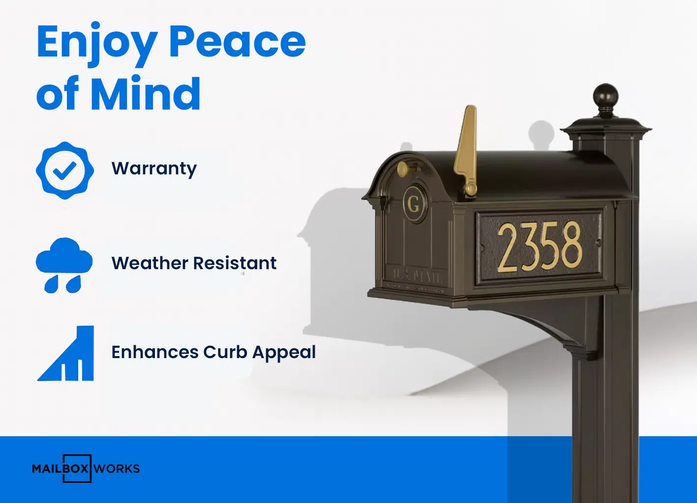 Contemporary Elegance for Any Home: The Whitehall Modern Balmoral Mailbox features a sophisticated design with clean lines, a minimalistic profile, and a luxurious finish. This sleek and stylish mailbox fits seamlessly with any architectural style, enhancing modern and traditional homes with its chic appearance.