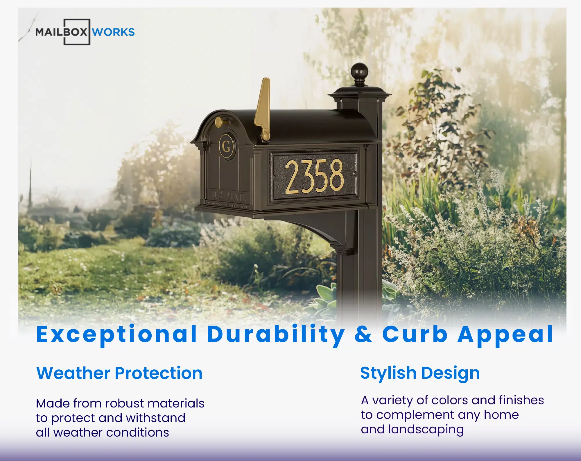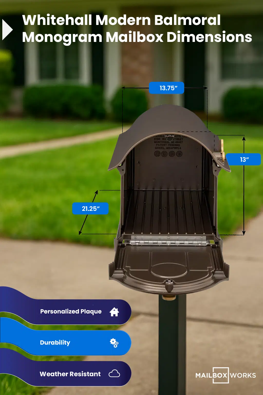 Contemporary Elegance for Any Home: The Whitehall Modern Balmoral Mailbox features a sophisticated design with clean lines, a minimalistic profile, and a luxurious finish. This sleek and stylish mailbox fits seamlessly with any architectural style, enhancing modern and traditional homes with its chic appearance.