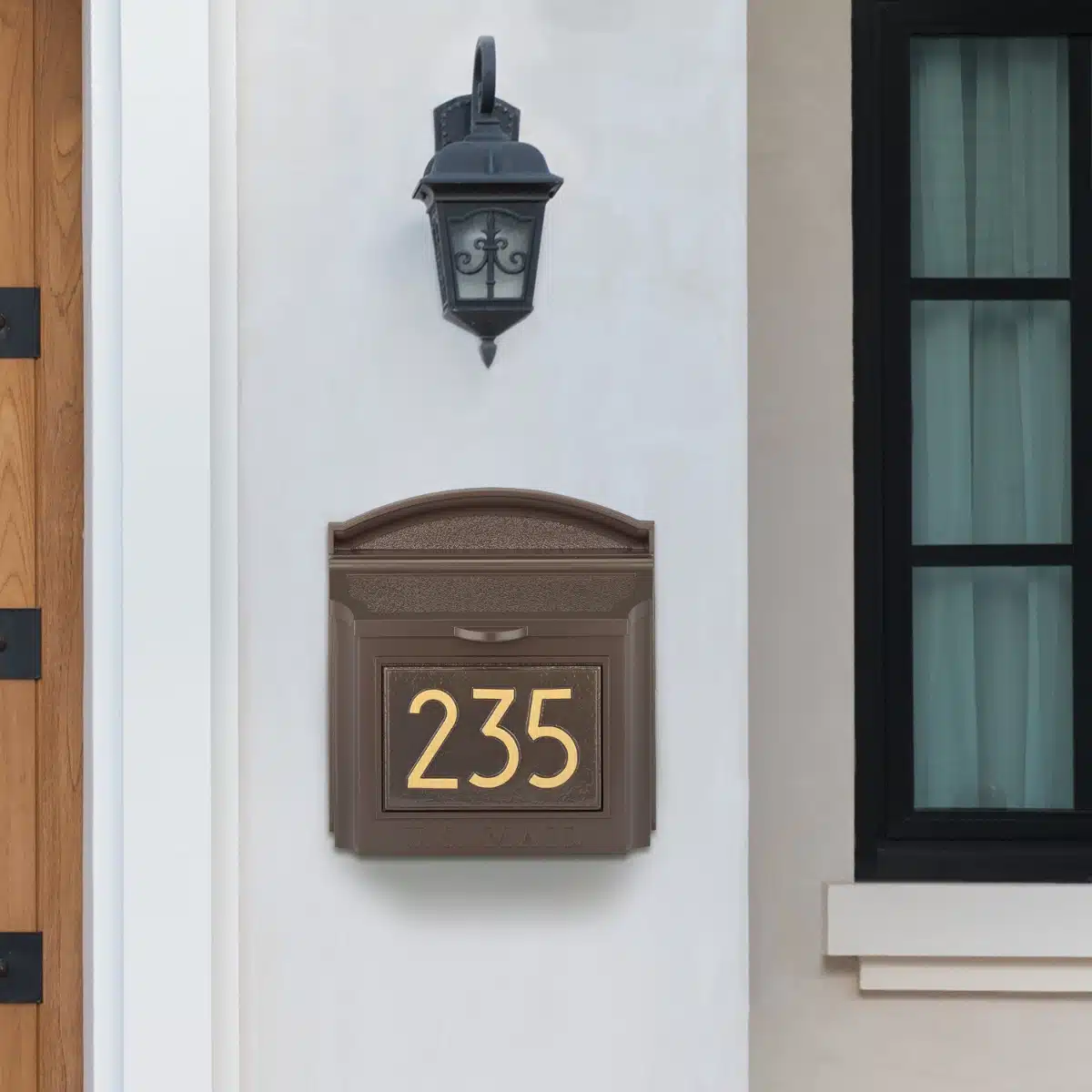 Upgrade both the security and style of your home with the Whitehall Modern Locking Wall Mailbox Package, a perfect combination of function and fashion. Designed with a classic yet modern aesthetic, this extra-large capacity wall-mounted mailbox keeps your mail protected while enhancing your home’s curb appeal. The included personalized address plaque clearly displays your house number, making your home easy to identify while adding a refined decorative touch.