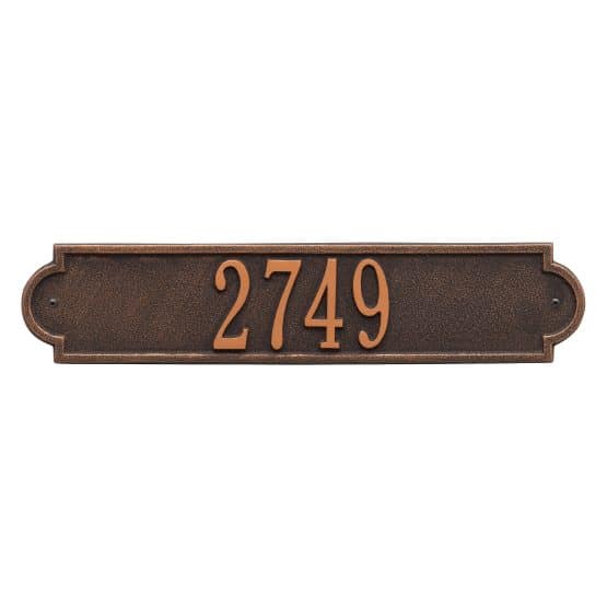 - The Whitehall Richmond Horizontal Address Plaque with one line holds up to five 4.5″ numbers or up to ten 3″ characters