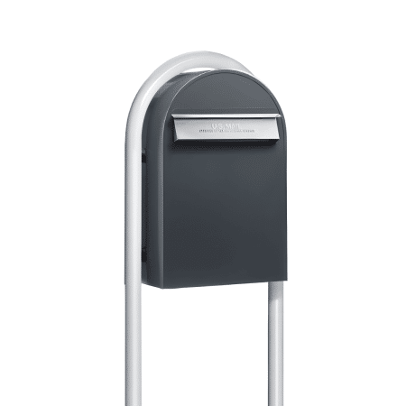 USPS Approved Bobi Classic B Rear Access Modern Locking Grey Mailbox and Round Stainless Steel Post Combo